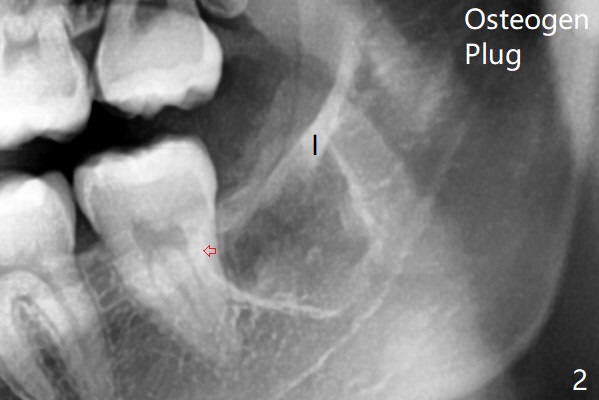 After extraction, one piece of Osteogen Plug is placed; the anterior end of the Internal Oblique Ridge (Fig.2 I) is located in the posterior of the socket. As the socket heals, the anterior end of the ridge is expected to advance.