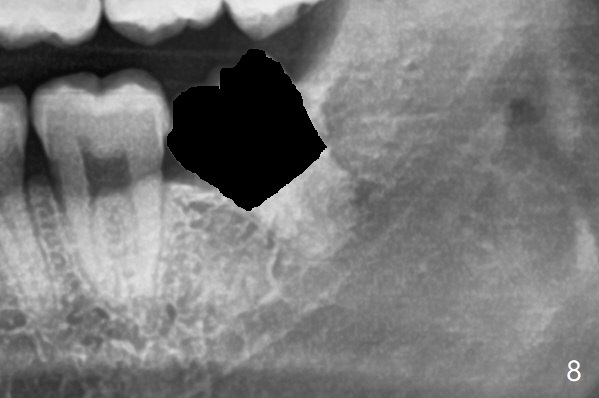 接着除去远中牙冠,并没有松动牙根(图八)。
