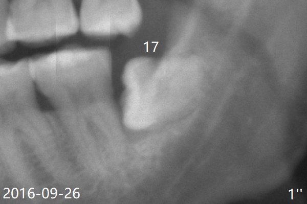 A 51-year-old man returns for #17 extraction 3.5 years post #32 one (Fig.1,2). The bone distal to #18 is lost severely (Fig.1).