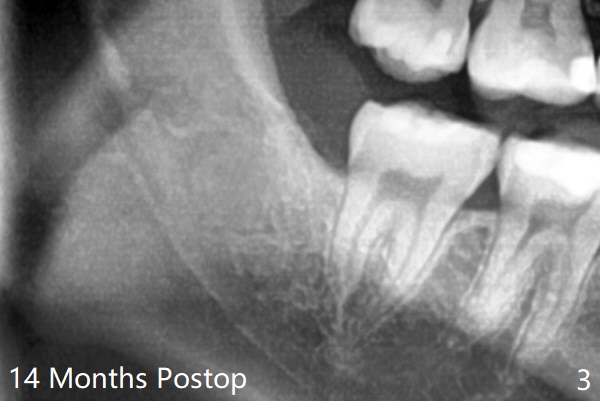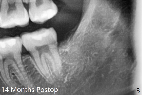 The lower 3rd molar sockets heal in 14 months (Fgi.3).