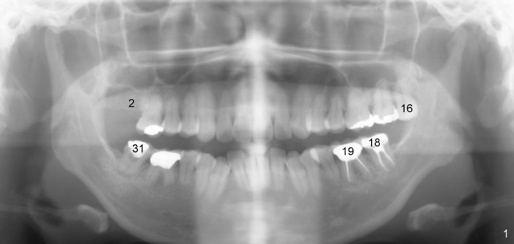 A 43-year-old lady develops tinnitus recently. Her primary care physician suspects that it is related to root canal therapy for the teeth #18 and 19 (Fig.1). Several more treatment is needed: extraction of #16 (Fig.1), RCT of #31 (Fig.1,3) and implant for #2 (Fig.1,2). Sinus lift and probably bone expansion may be required for #2 implant placement. Does usage of osteotomes worsen tinnitus, similar to occasional occurrence of vertigo after bone expansion?