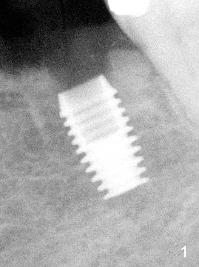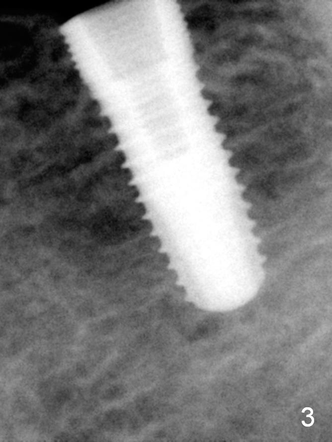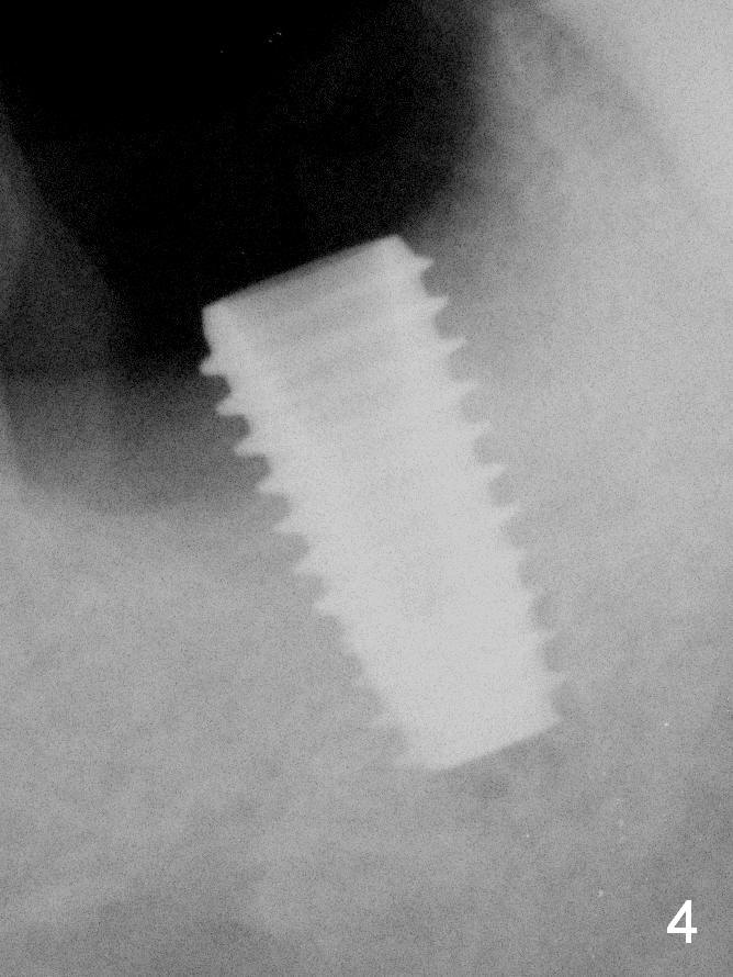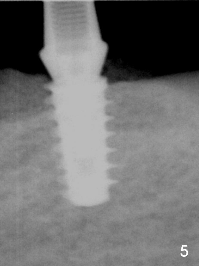 All of the 5 implants shown above are ~ 5 mm in diameter, placed in the lower 1st molar site. The first implant system used in my office is press fit (Fig.1). The reason to switch is its inability for immediate implant. The tissue-level implant appears to have aggressive thread patterns (Fig.2, bone/Titanium ratio: 50/50). To improve cosmetics, a bone-level implant is used (Fig.3). To enhance primary stability, a better thread patterned implant is chosen (Fig.4, bone/Titanium ratio: 70/30). It is apparent that IBS implant has the sharpest threads (fins, bone/Titanium ratio: 90/10, Fig.5)). It is consistent with my clinical cases. All of the implants mentioned above are placed at the site of #19 with diameter 4.5-6 mm and length 8-17 mm.