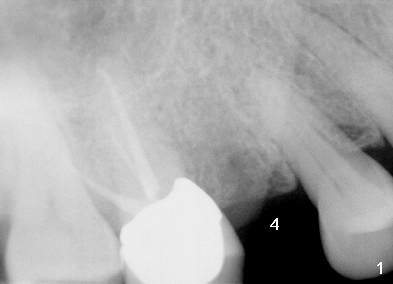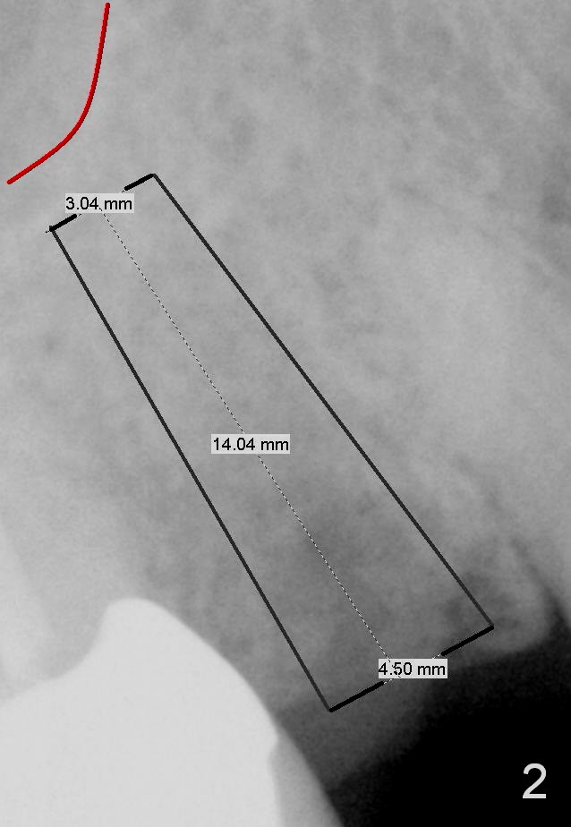 A 55-year-old lady had the tooth #4 extracted with socket preservation 4-5 months ago. The ridge does not look too narrow. Use a 3 mm tissue punch from the DIO 1 piece implant kit for access. Also prepare #15 blade. Since bone density within the healing socket seems low (Fig.1), use bone expanders, until 2-3 sizes smaller than the designed implant (4.5x14 mm, Fig.2). Pilot drill at 10 mm and take PA. After using the last bone expander, taken another PA. What is the real reason using bone expanders in this case, since the ridge is not so narrow?