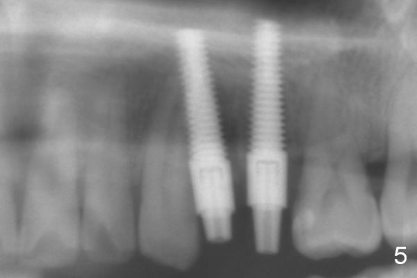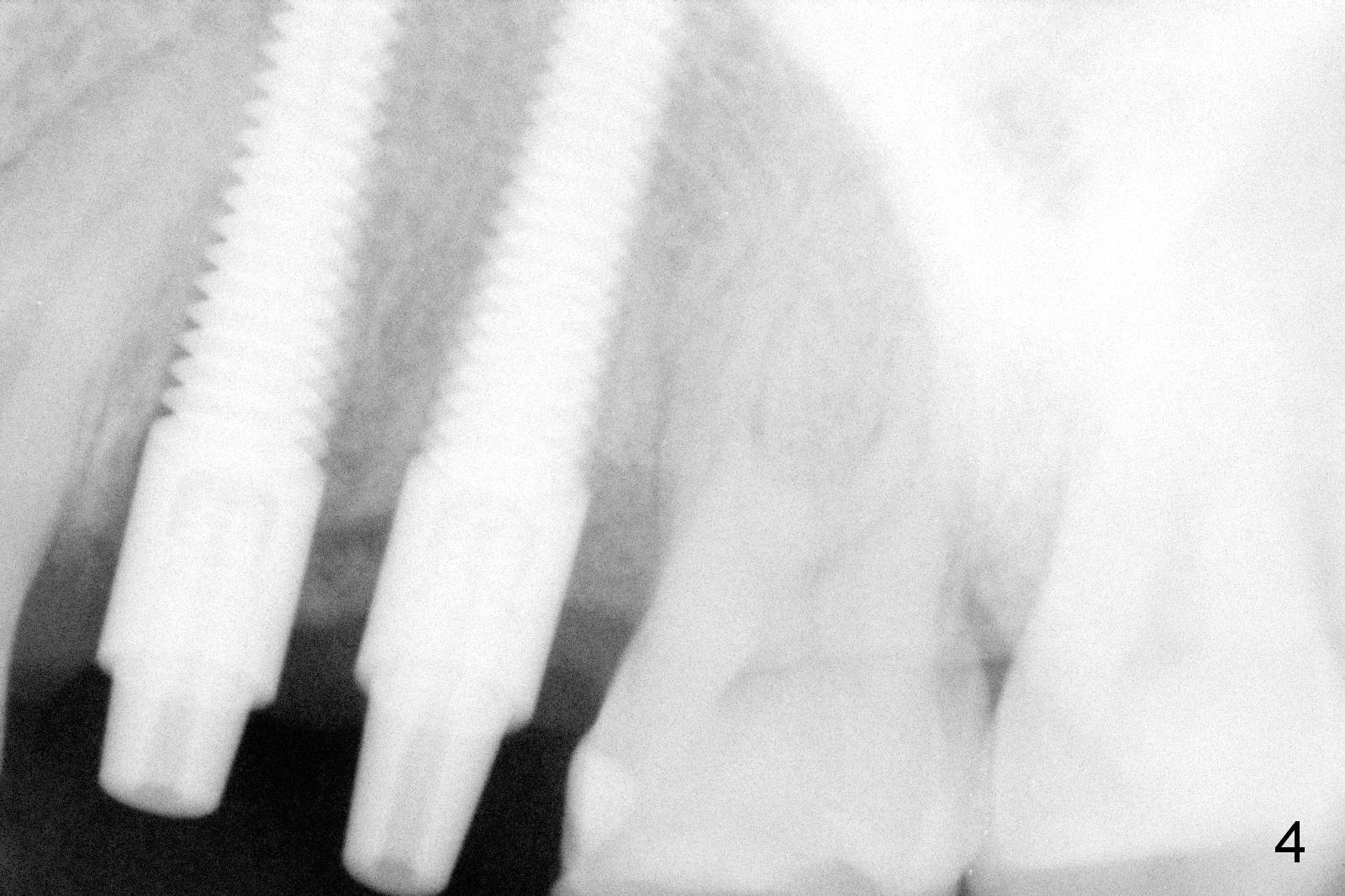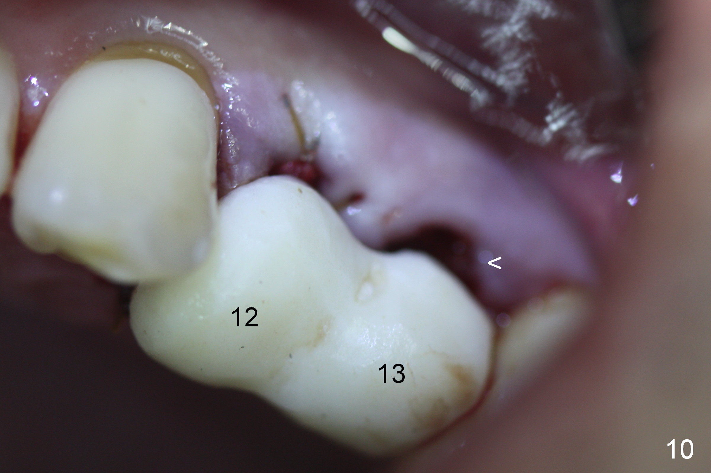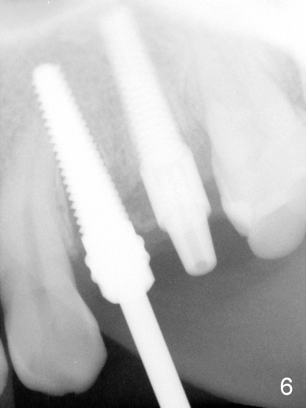 In brief, PA should be taken after pilot drill, no matter how easy the case seems to be. It is difficult to change trajectory later on. Careful analysis of preop PA is equally important. Implant should not be placed outside of PA. The patient will return for #12 implant placement for the 2nd time 2.5 months postop.
