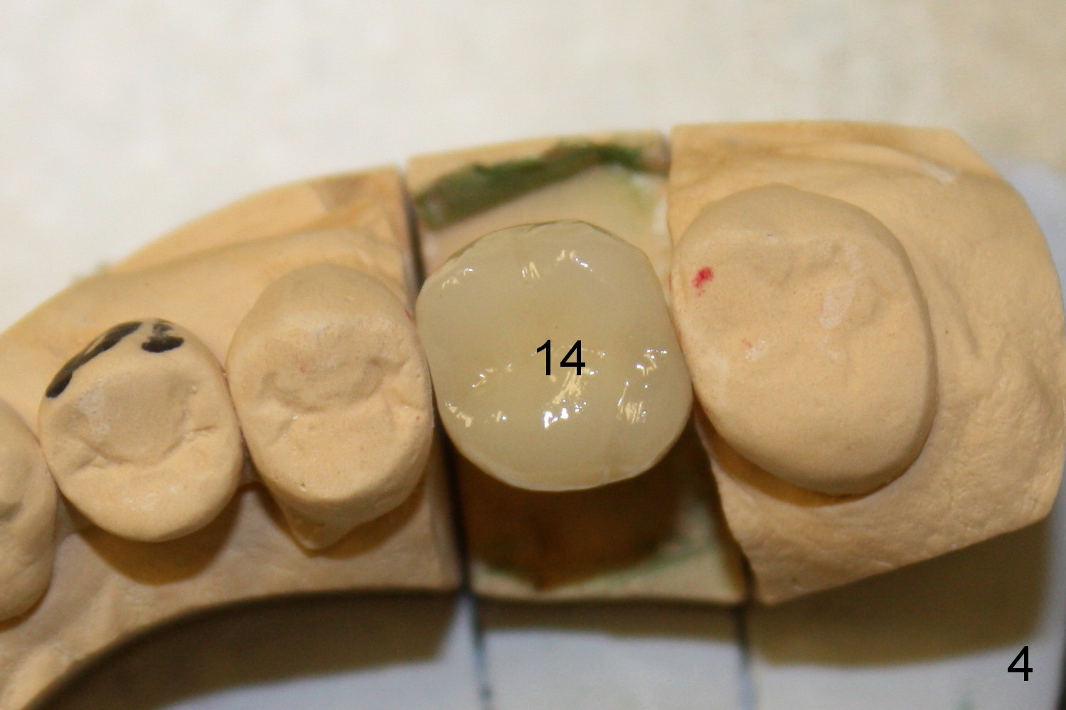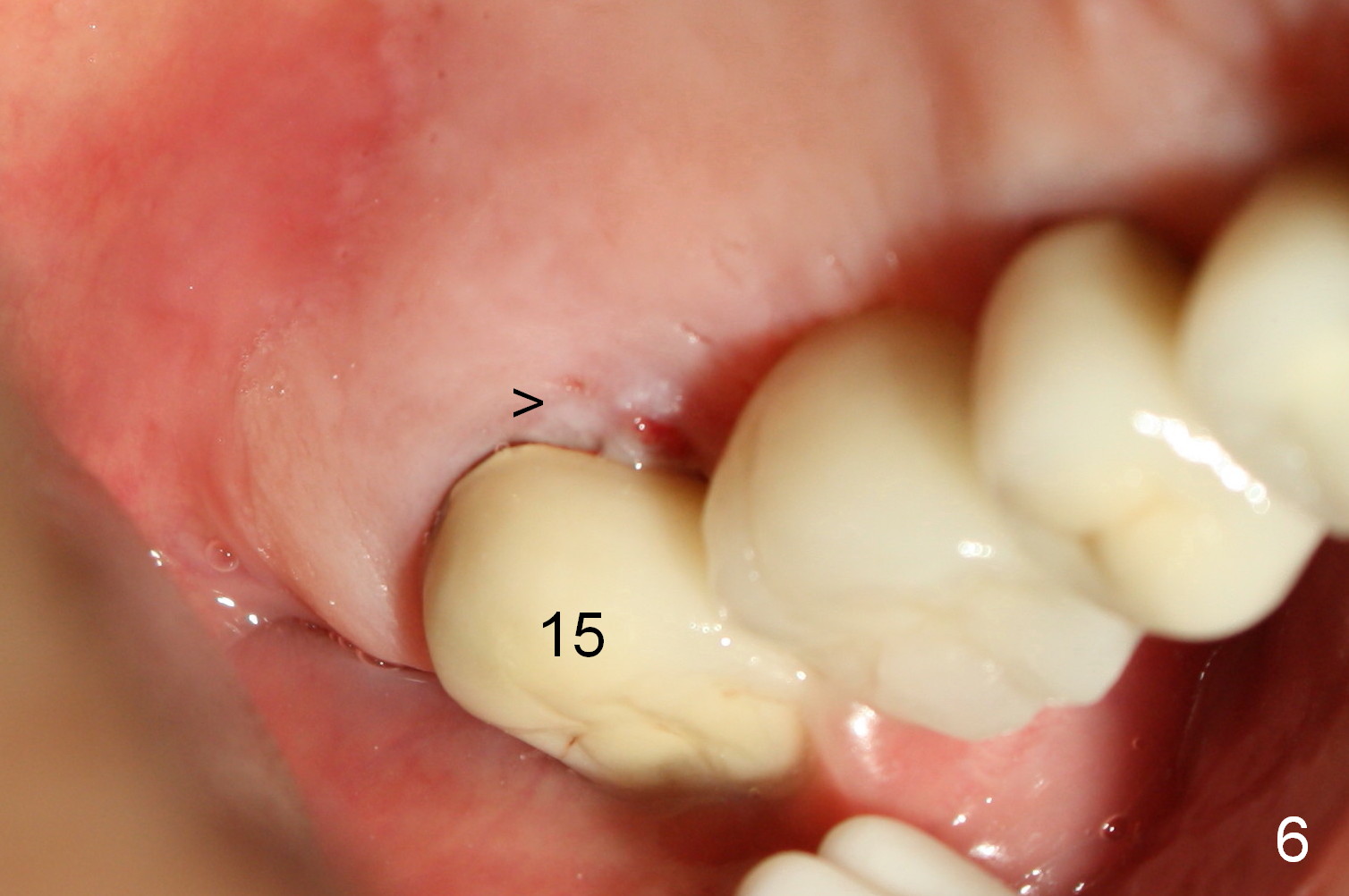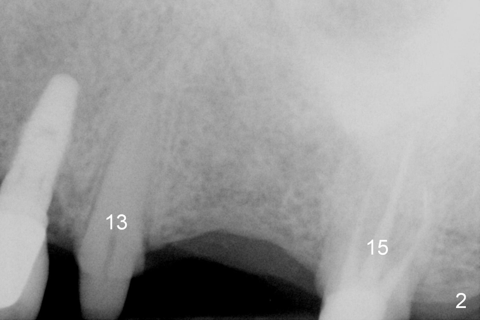 A 73-year-old man returned for recall and had panoramic X-ray taken yesterday. The latter shows no bone loss associated with different types of implants (Fig.1). The implants (relatively small in diameter) and crowns were present at the sites of #3 and 12 when the patient presented to my clinic 6 years ago. His chief complaint was discomfort at #13-15 fixed partial denture (FPD). The tooth #15 seems to be without pathology. To increase its longevity, the FPD was removed (Fig.2), a 5x8 mm Bicon implant (short) was placed at #14 (5 years 11 months post cementation now) and single unit restorations were cemented at #13 and 15 (Fig.3). The occlusal table of the implant crown at #14 is narrow buccopalatally (Fig.4). The occlusal contact of the implant restoration is minimal (Fig.5), which is unfavorable for the weakened tooth (#15). The latter shows sign of failure 7 months post #14 crown cementation (Fig.6 >). The patient refused to accept treatment for #15. Seven months later, the tooth #5 fractured (1st sign of bruxism) and a 5x20 mm cylindrical Tatum tissue-level implant (long) was placed immediately (4 years 5 months in function now). Finally the patient agrees with immediate implant at #15 (7x17 mm tapered Tatum tissue-level implant, large). Follow up is 2 years 7 months post cementation. Ideally 2 implants should have been placed when the FPD was removed. To reduce deleterious effect of bruxism, the last implant was placed with bone expansion at the edentulous area at #2 (5.3x14 mm DIO submerged implant, 1 year 9 months post cementation now). The 2nd sign of bruxism is placement of inlay/onlay on the teeth #19 and 30 (Fig.1). The palatal cusp of the implant crown at #13 remains untreated. The 2 immediate implants at #5 and 15 happen not to have immediate provisional. In all, for a bruxer, an implant does not have to be large or long as long as implant trajectory is correct.