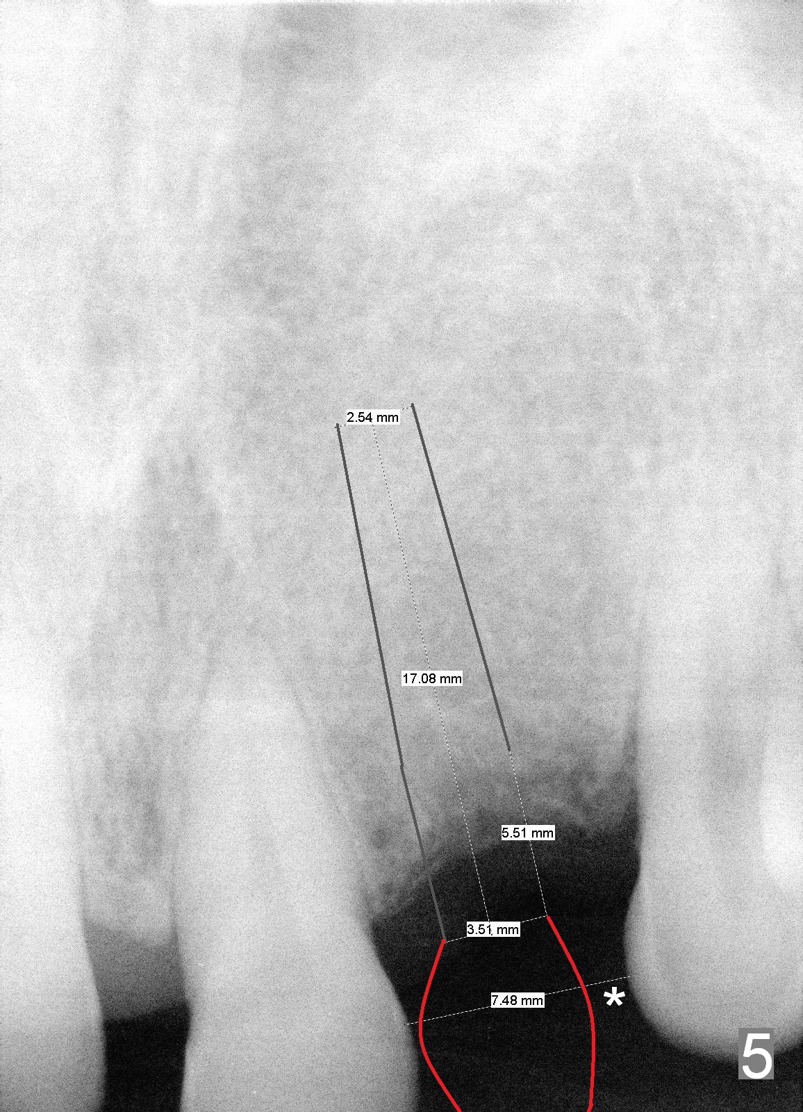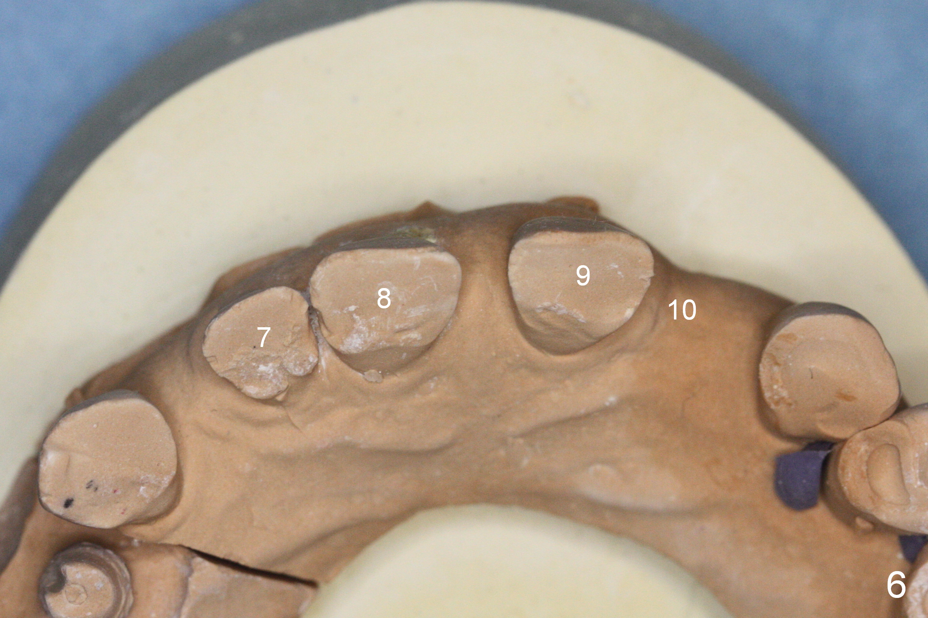 Although the edentulous space is not narrow at #10 (Fig.4), a small diameter implant should be used due to anterior diastemata (Fig.5). The implant will be placed slightly mesially to have a diastema distally (Fig.6 *). If there is a labial apical concavity, a shorter implant will be placed (14 mm). Also prepare angled 1-piece implants. Take preop photos to show the labial concavity if present.