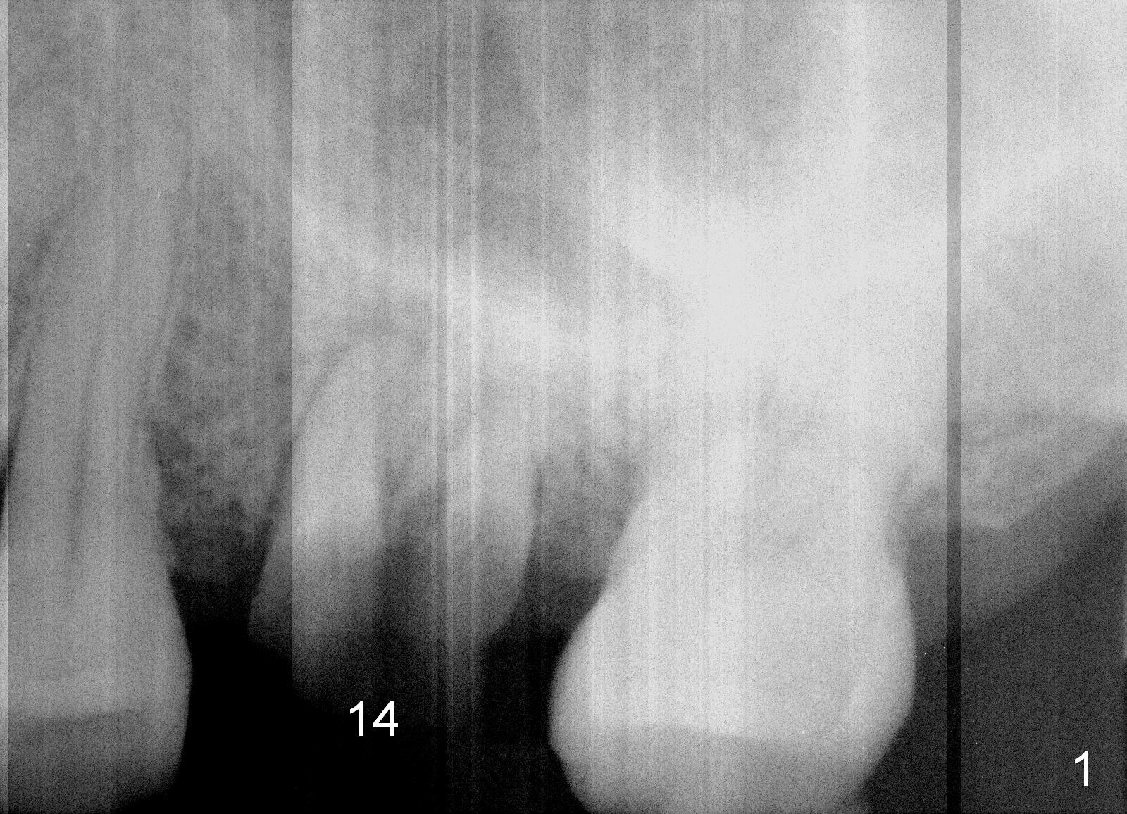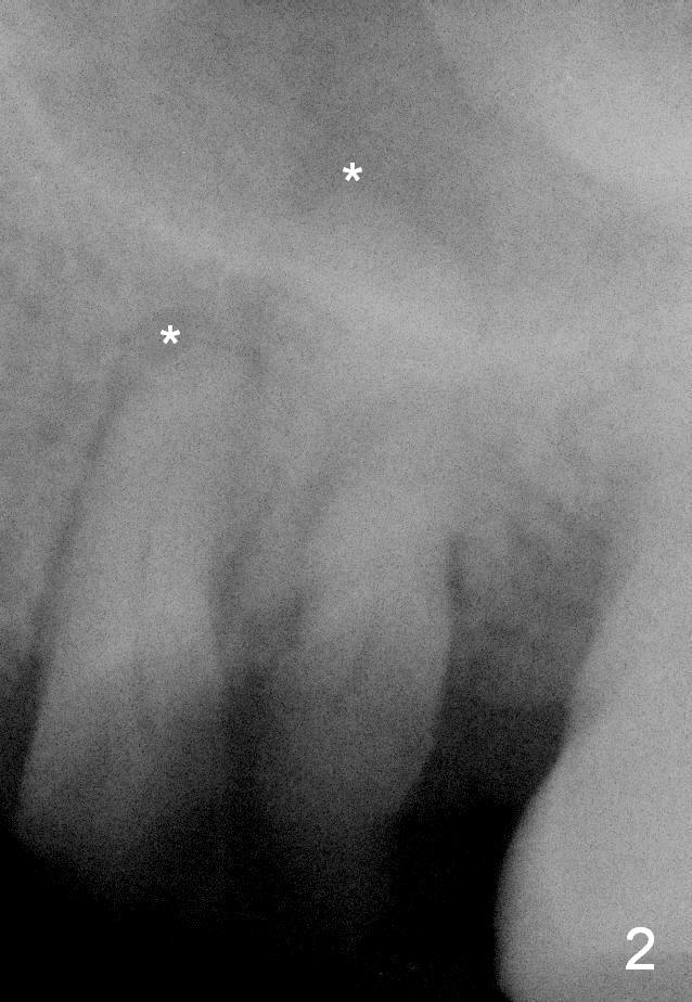 A 49-year-old man requests to restore #14 with residual roots (Fig.1). There is periapical radiolucency (Fig.2 *). A 5.9x10 mm bone-level implant is placed with minor sinus lift (Fig.3), whereas a short (Fig.4) or long (Fig.5) tissue-level implant is placed without or with sinus lift. The implant could be as large as 7 mm (Fig.5) to prevent post-extraction ridge atrophy.
