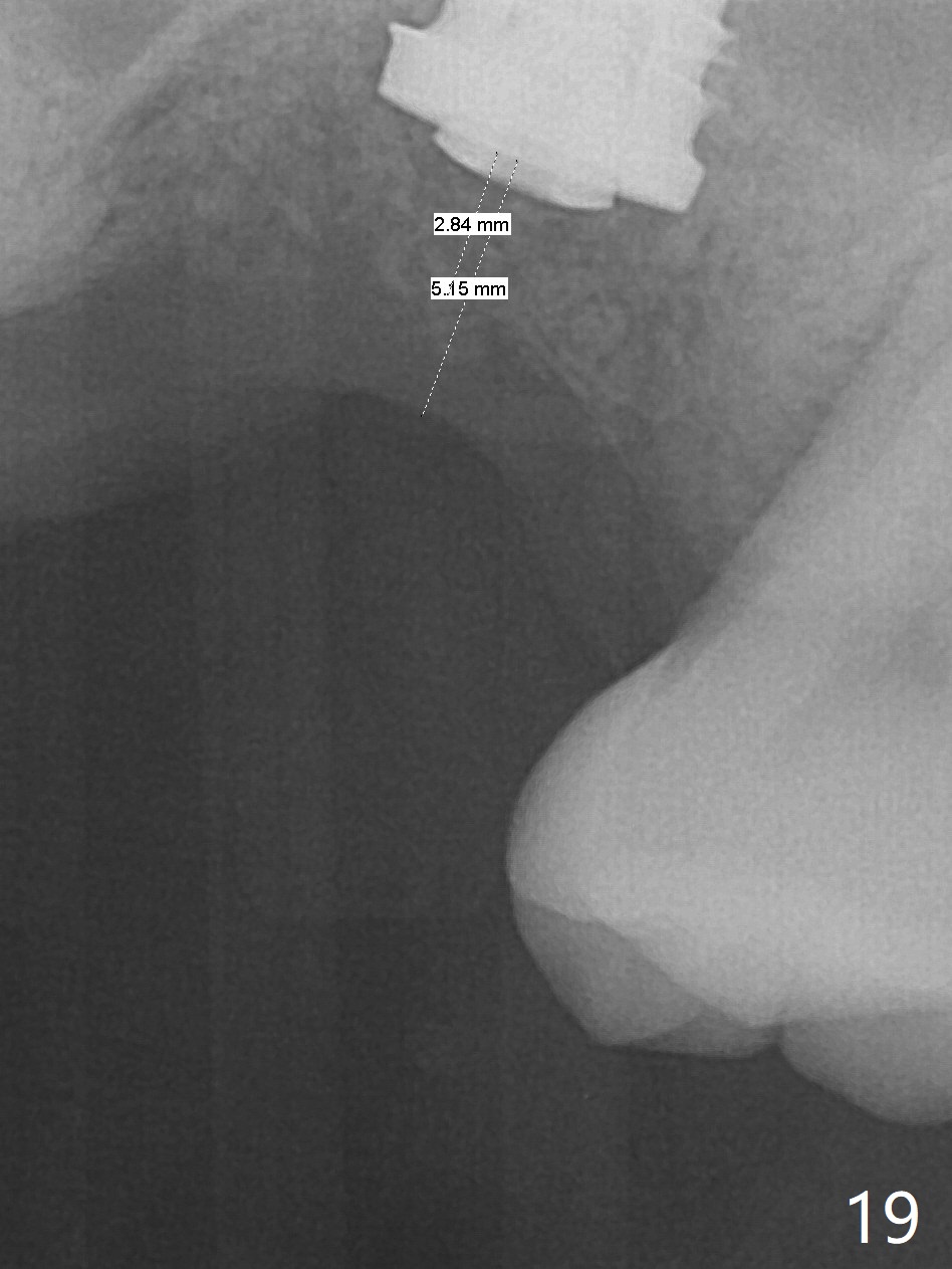 2. I predict that the bone above the implant will only be about 1-2 mm. In other words, your idea of backing up the implant will only be about 1-2mm possible.