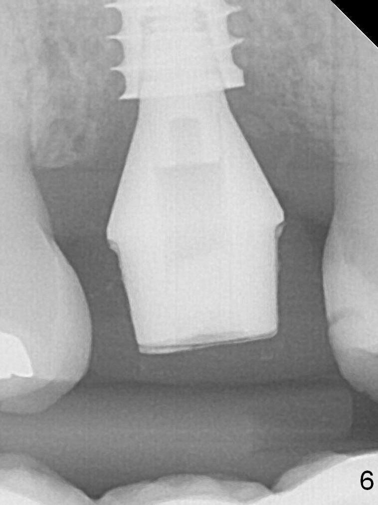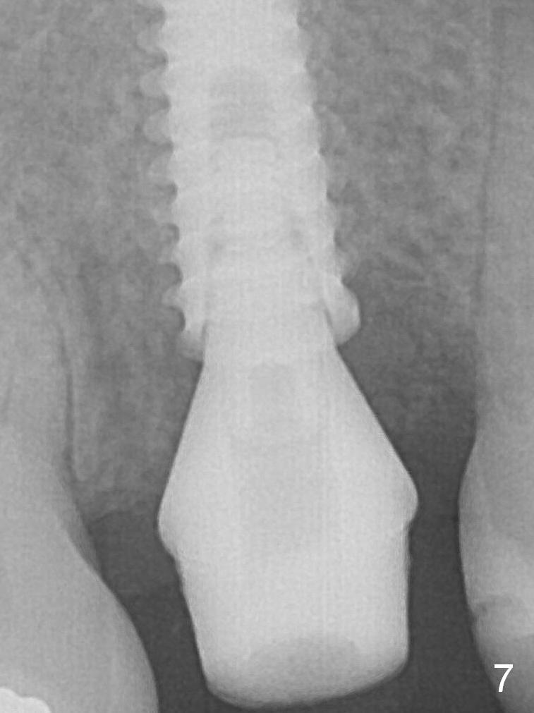There is no bone loss 3 months postop (Fig.6,7). The screw needs to be retightened 9 months post cementation (Fig.8).