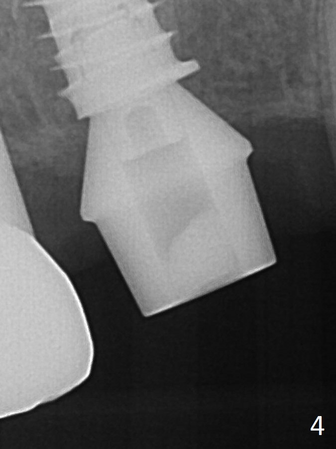 Fig.4: A 5.5x9 mm IBS implant is place with ~ 35 Ncm. A 6.5x4(3) mm abutment is placed immediately for an immediate provisional.