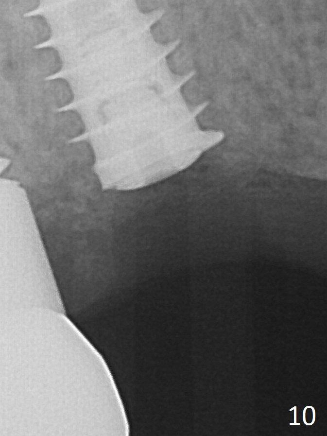 There is mild crestal bone loss 3.5 months postop (Fig.10).