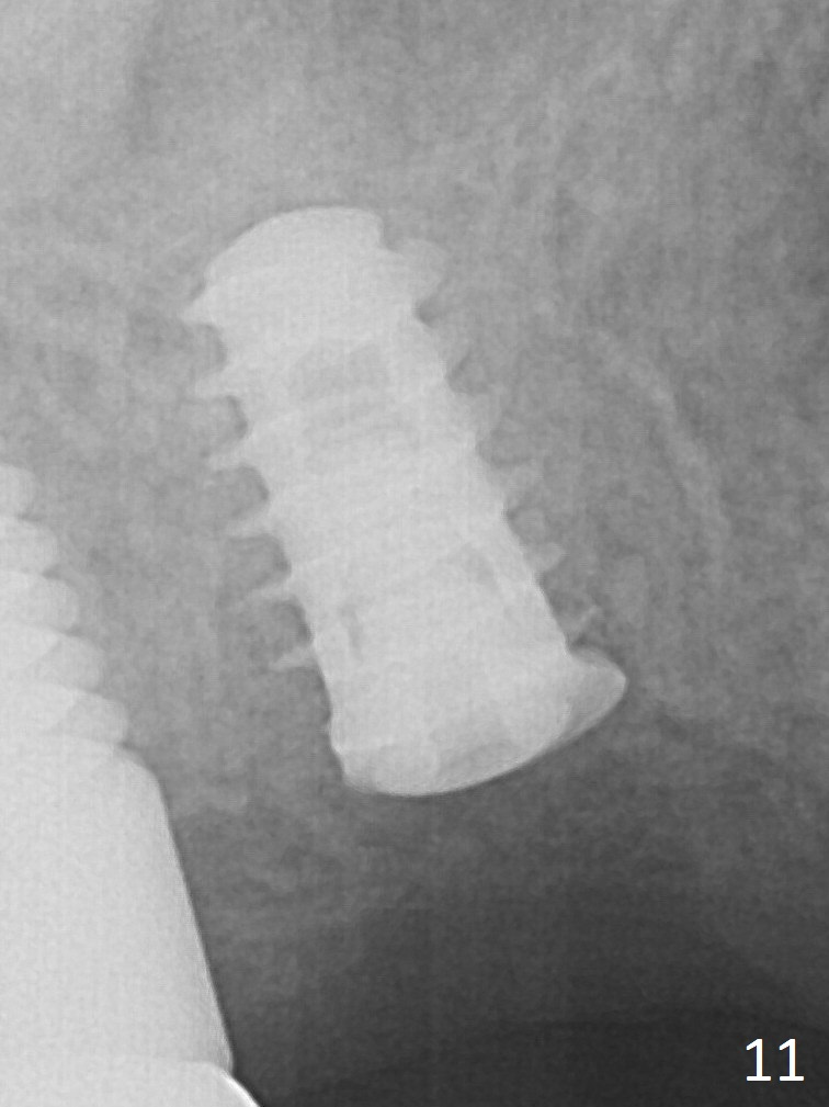 The implant appears to be osteointegrating 3.5 months postop (Fig.11).