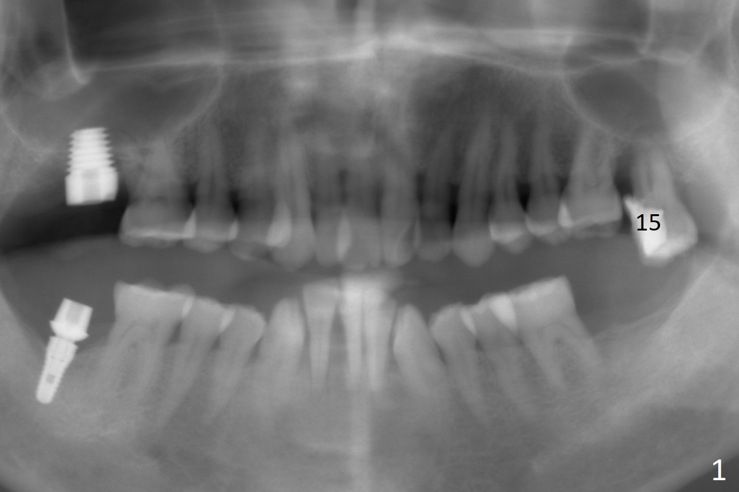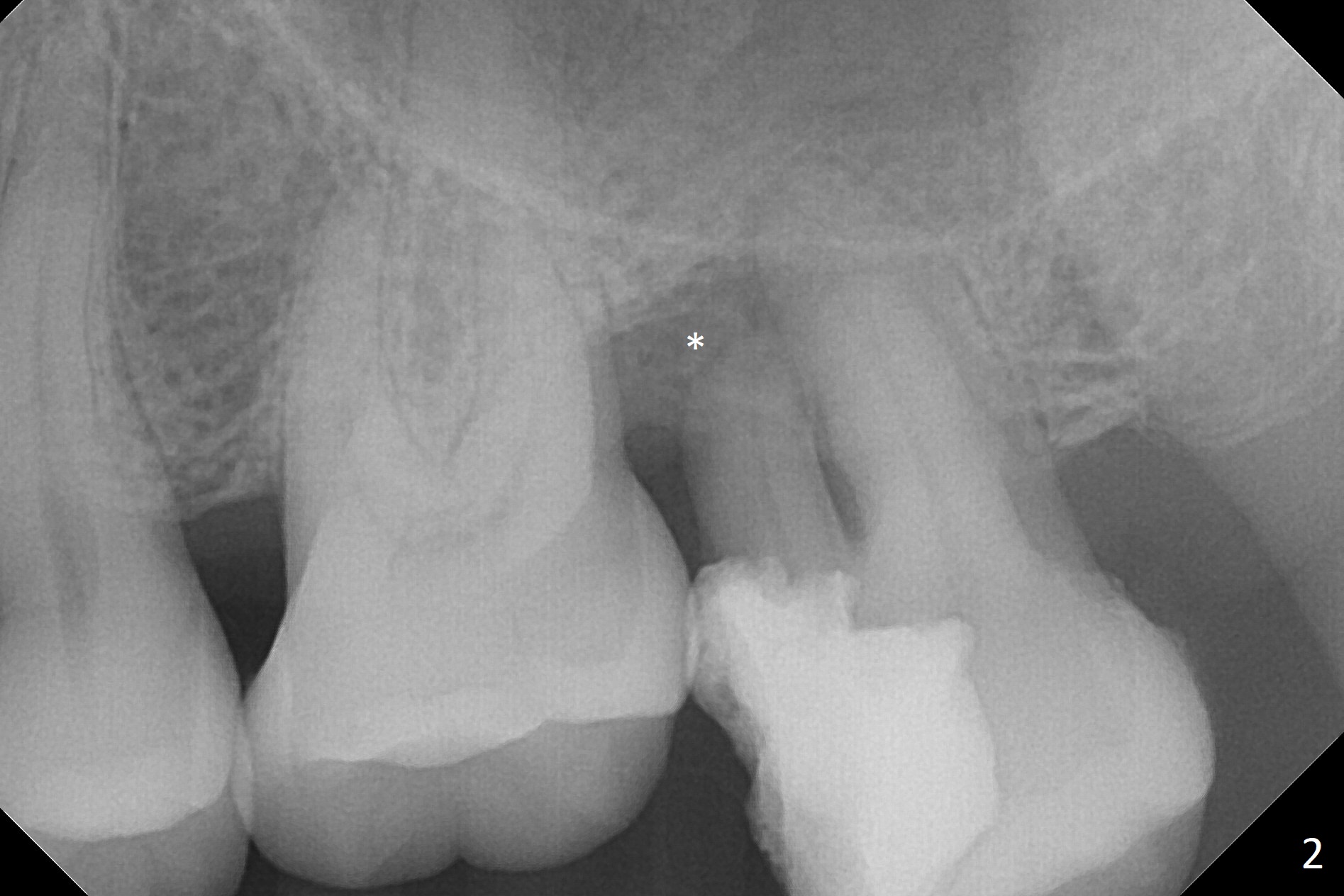 A 47-year-old man will return for #15 extraction and implant (Fig.1). Bone loss seems to be the most severe around the mesiobuccal root (Fig.2 *), from which the osteotomy should stay away (Fig.3). Take PVS impression for the sockets. Use Tatum osteotomes for sinus lift.