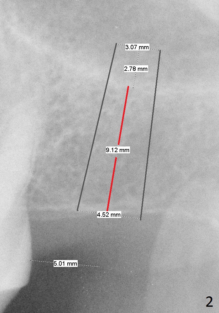 A 65-year-old woman will return to have an implant placed at the site of #15 a few years after that at #19 (Fig.1). Clinically there is limited vertical clearance and the ridge is narrow. These 2 problems will be handled with placement of the implant deep and use of bone expanders, respectively. To protect the sinus membrane, the initial osteotomy depth is going to be 10 mm (9-1+2 mm, Fig.2) with an increase of 1 mm in depth with each of the bone expanders. Take PA with the initial drill. Prepare IBS implant and the one used last time for the patient, including healing and restorative abutments.