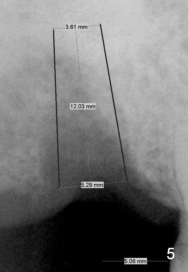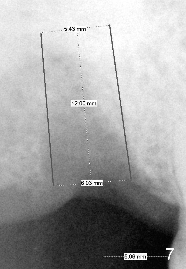 The smallest implant could be 5.3 mm (Fig.4,5). The short (10 mm, Fig.4) and long (12 mm, Fig.5) may be below and above the sinus floor, respectively.