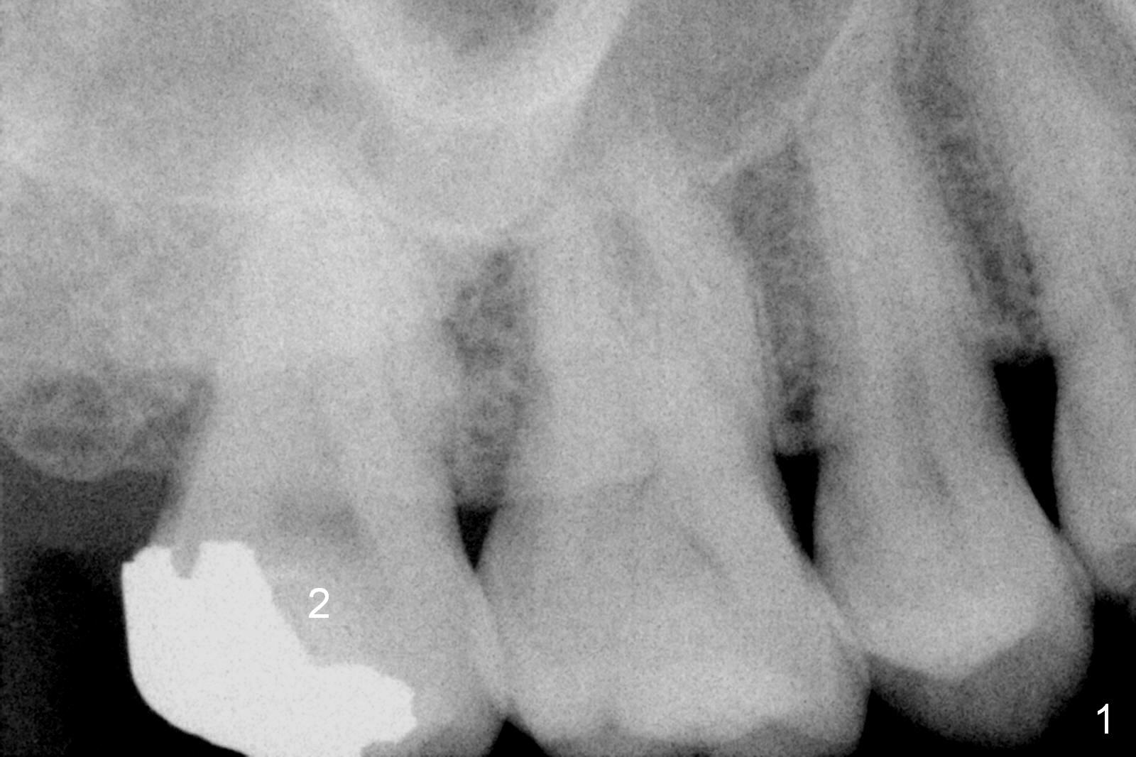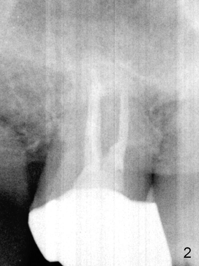 Two months post op, the temporary crown has slight mobility. The pair abutment is changed to a 6x2 mm healing abutment.