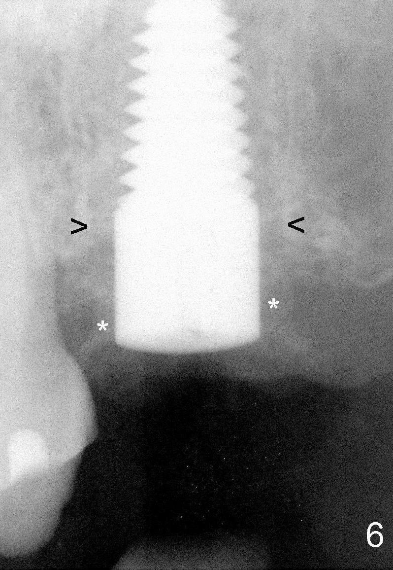 Fig.6: 6x20 mm implants (*: bone graft).