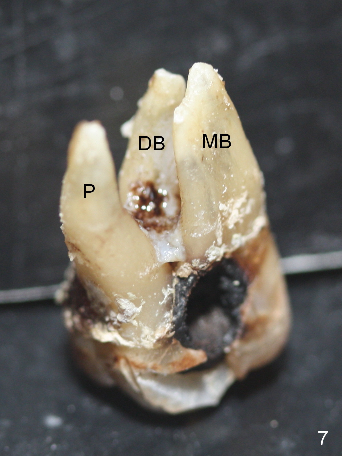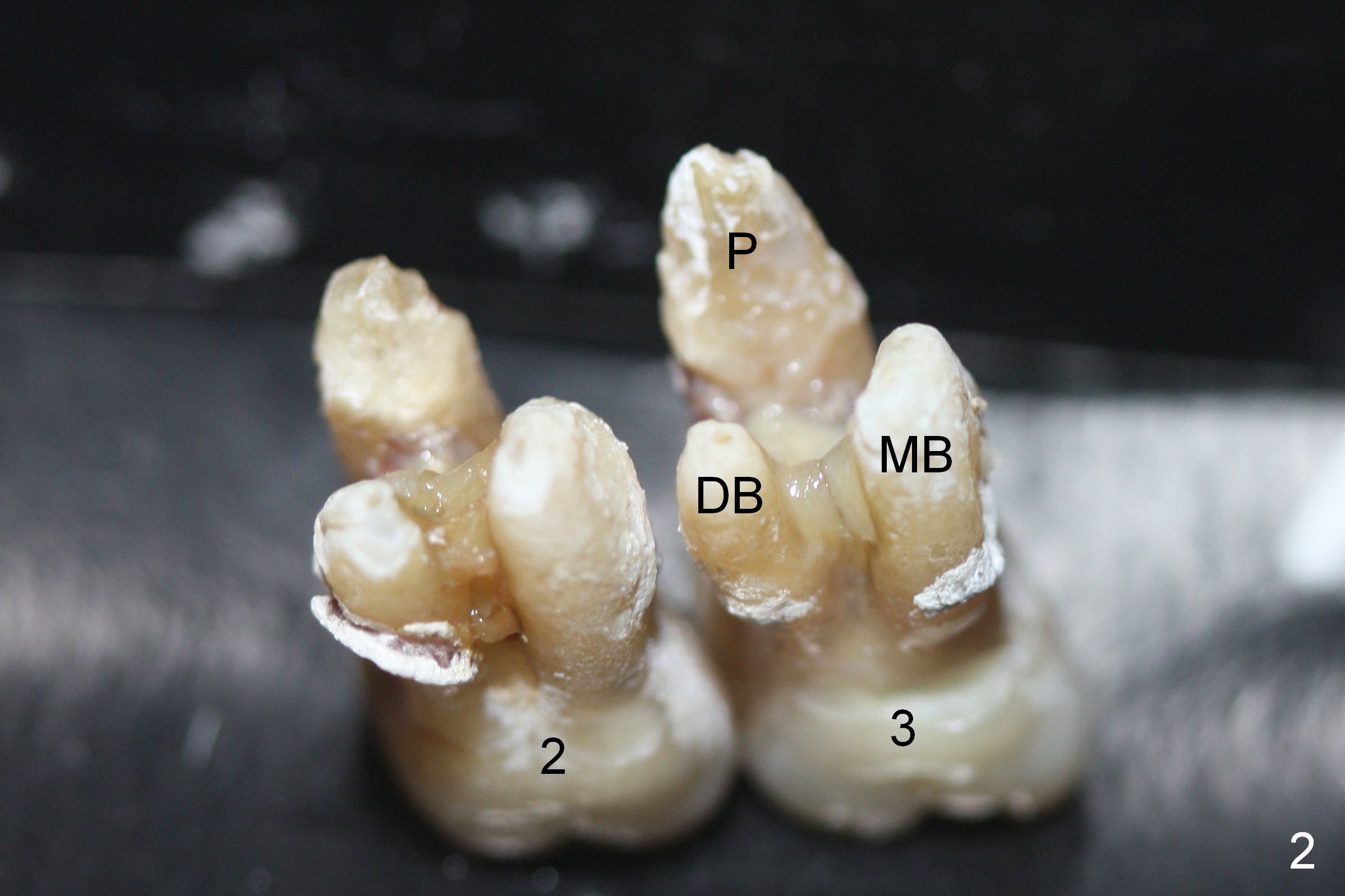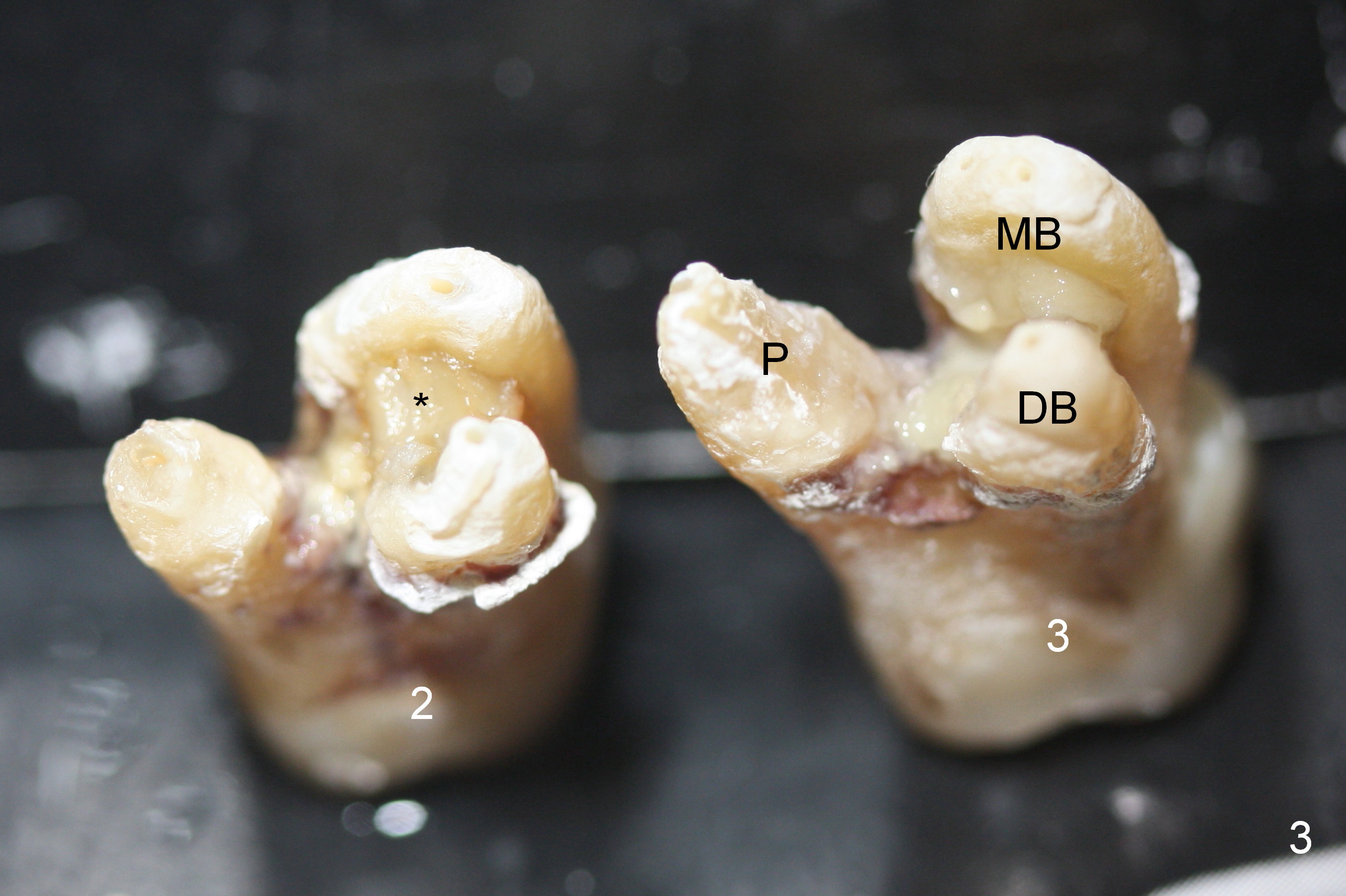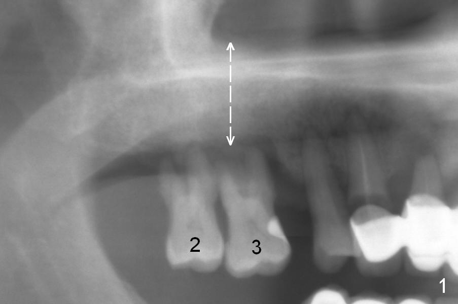 The maxillary 1st molar has 3 widely separated roots (Fig.1-3: #3) with a wide septum in between, as compared to the 2nd one (#2). The septum is a suitable site of immediate implant. When the septum is destroyed by pathology, the immediate implant has to be big.