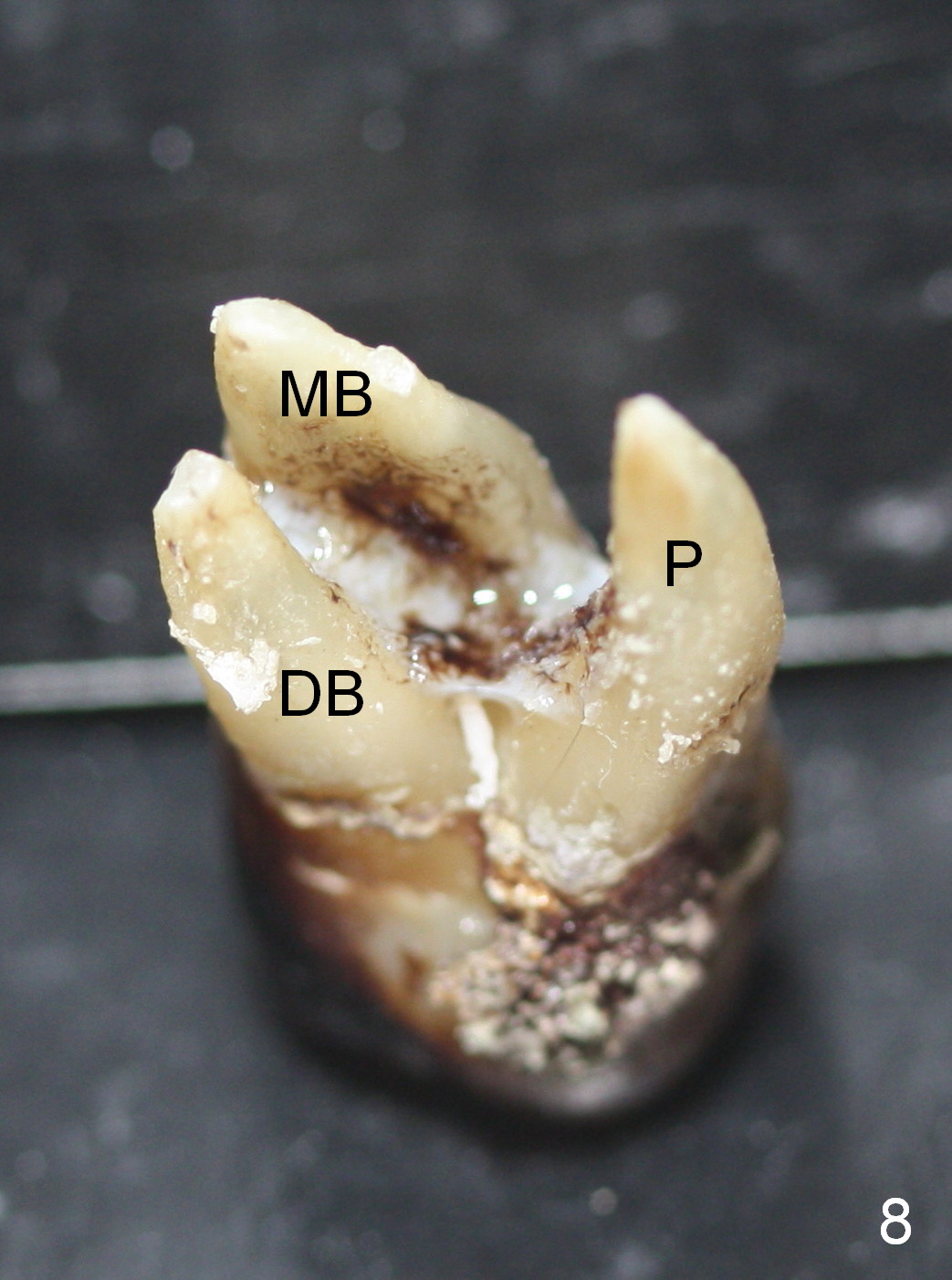 By comparing the root morphology of an extracted tooth (Fig.7,8: #15) with that of X-ray (Fig.9) repeatedly, we can develop an ability to visualize the septum prior to surgery.
