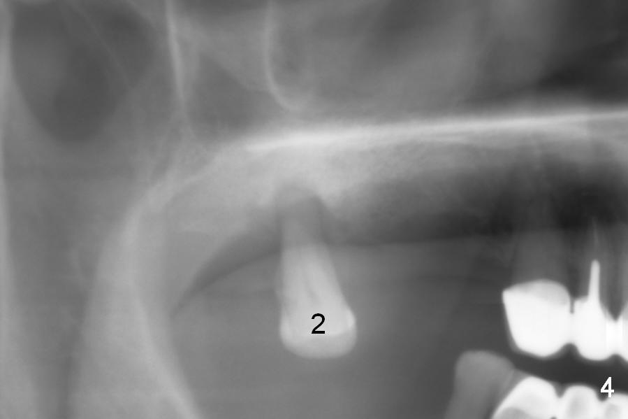 The furcation of the upper 2nd molars is variable. For example, the buccal roots of the 2nd molar may be fused (Fig.4-6). The septum may be destroyed due to infection such as in this case (Fig.4). An immediate implant could be placed in the septum or the buccal and palatal sockets, depending upon the integrity of the buccal and palatal plates.