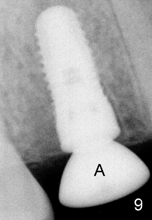 Fig.9: The density of the distal socket increases 2.5 months postop. A: healing abutment.