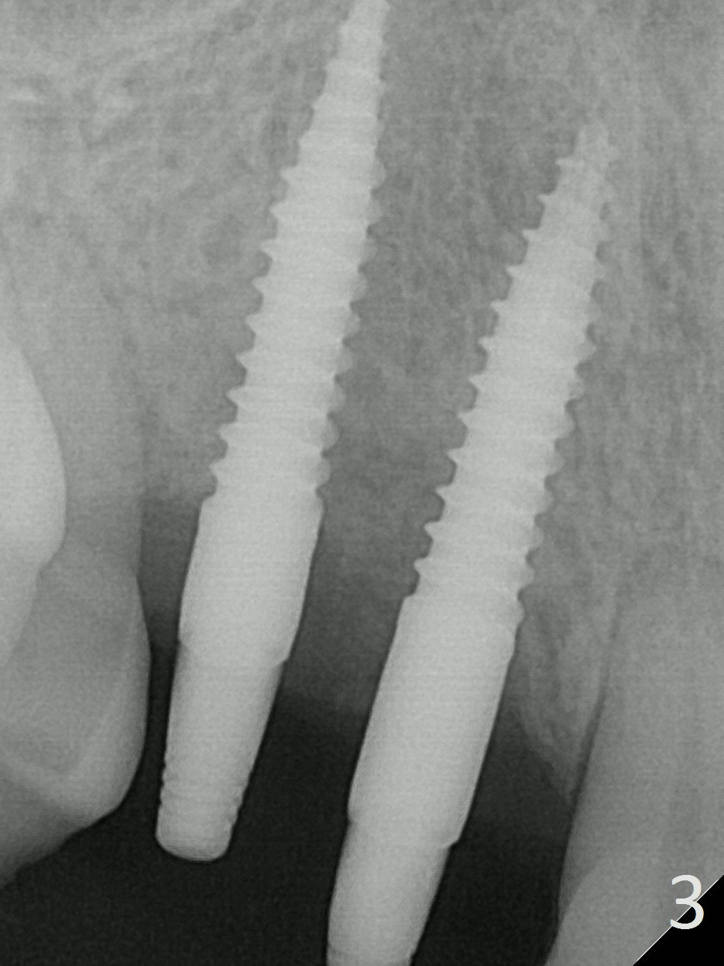 There is no bone loss 3 months postop (Fig.3, probably due to the hard bone).