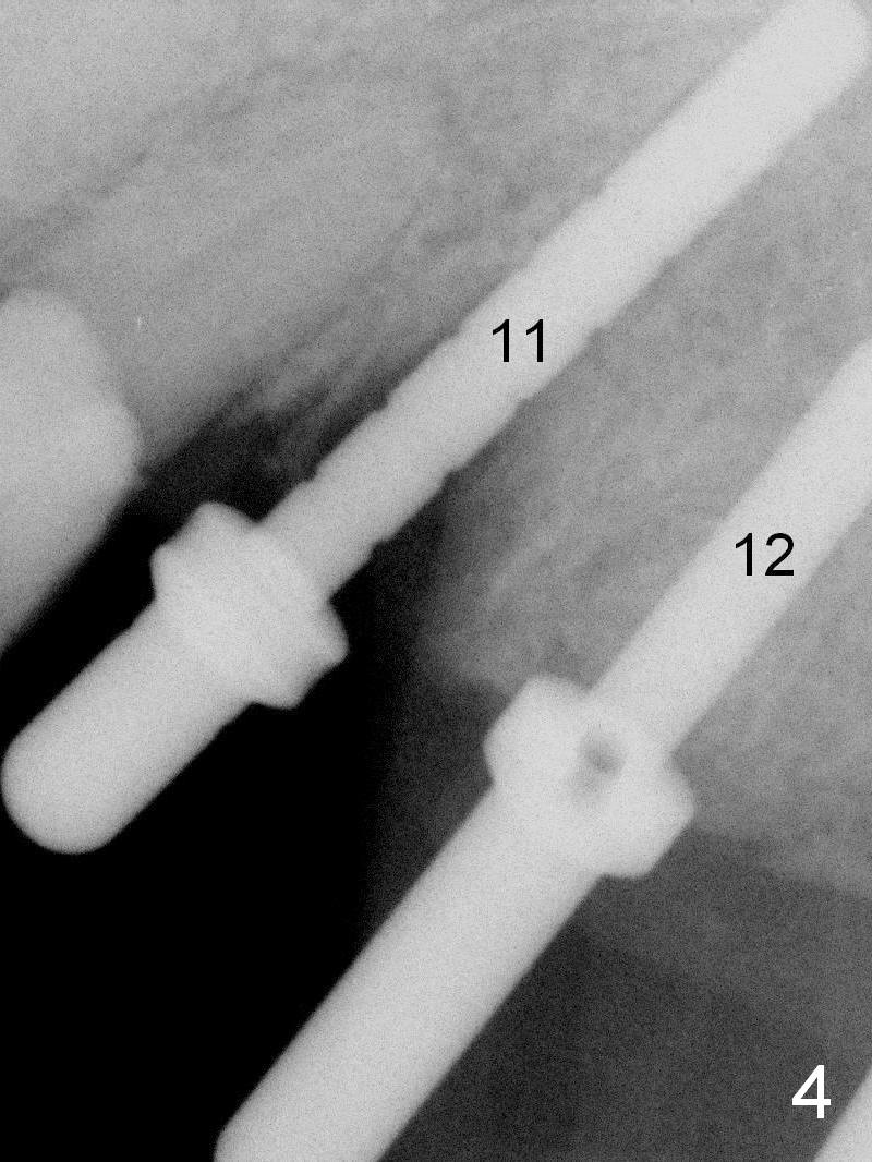 The patient returns for definitive restoration 3.5 months postop (Fig.9). Osteointegration appears to have occurred at #11.