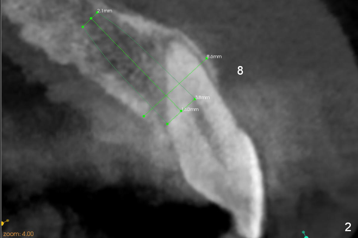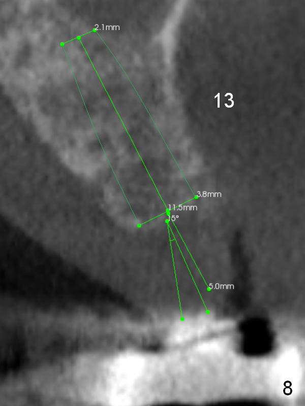 Then use Magic Split (flapless) and Magic Expanders for #13, since bone density is between 150-800 (Fig.8).