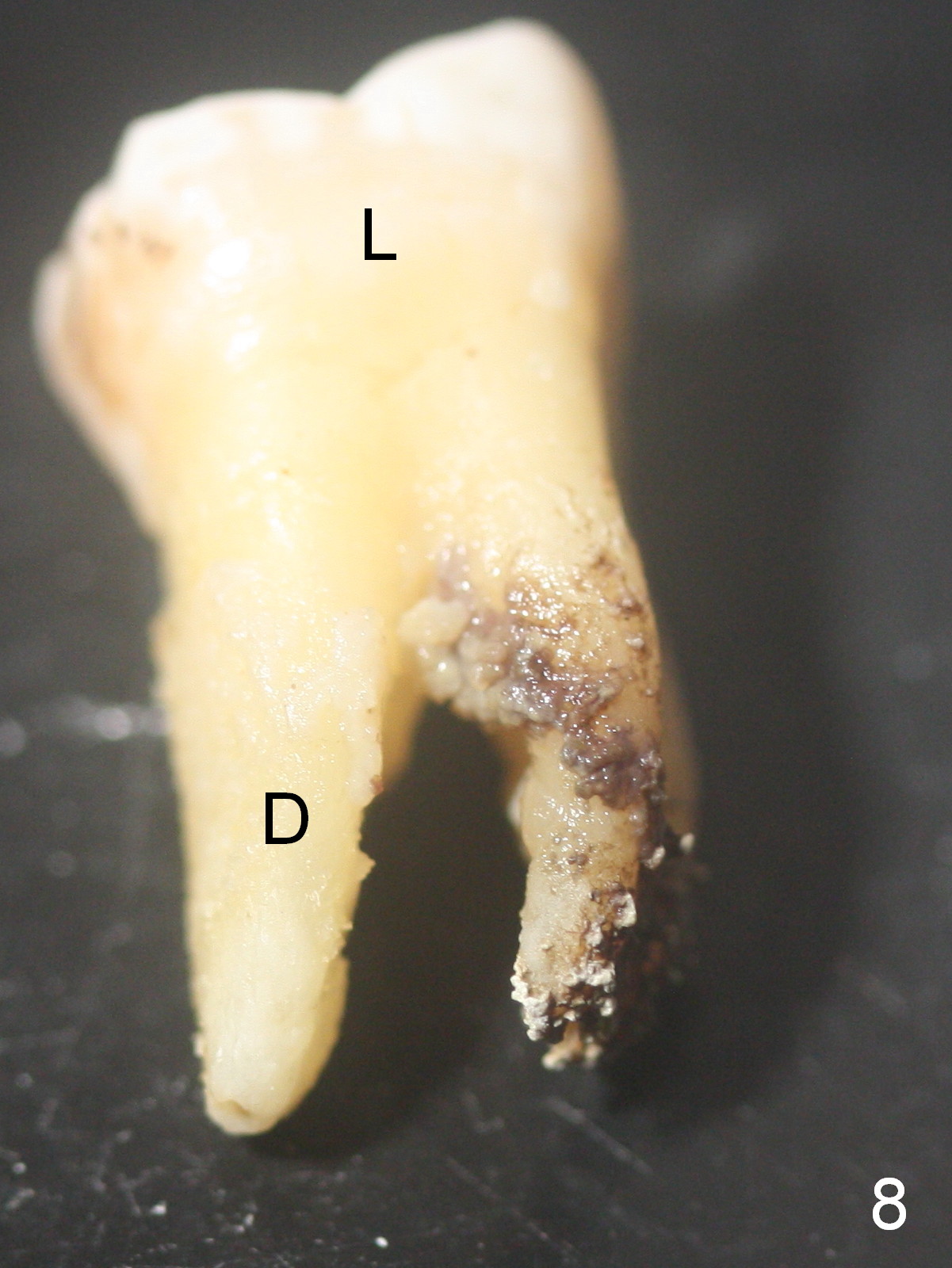 There is calculus over the mesial root of the extracted tooth (Fig.7,8).