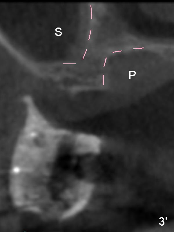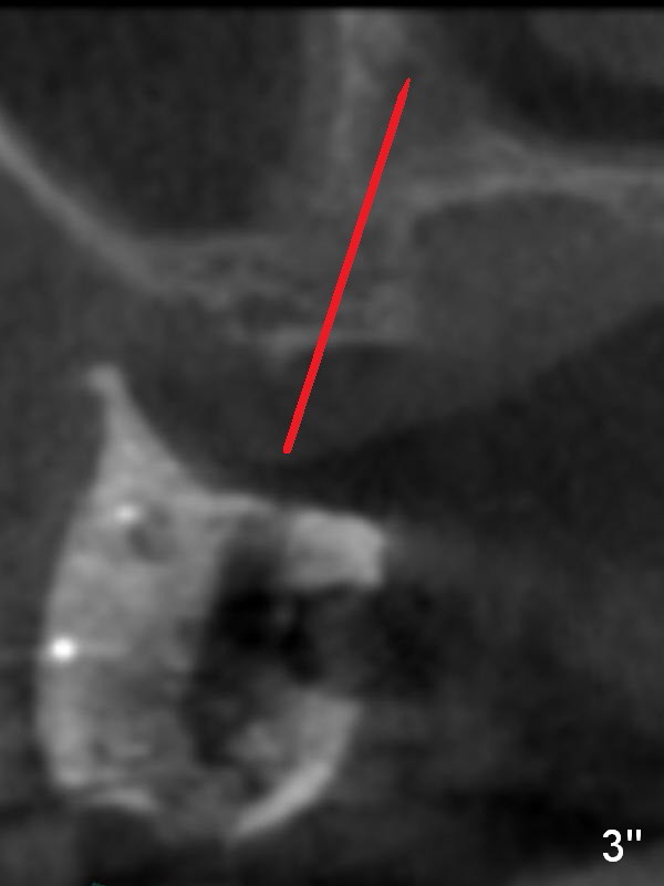In fact the bone available for untraditional implant placement is more exactly located between the sinus and the palate (Fig.3' pink dashed line).