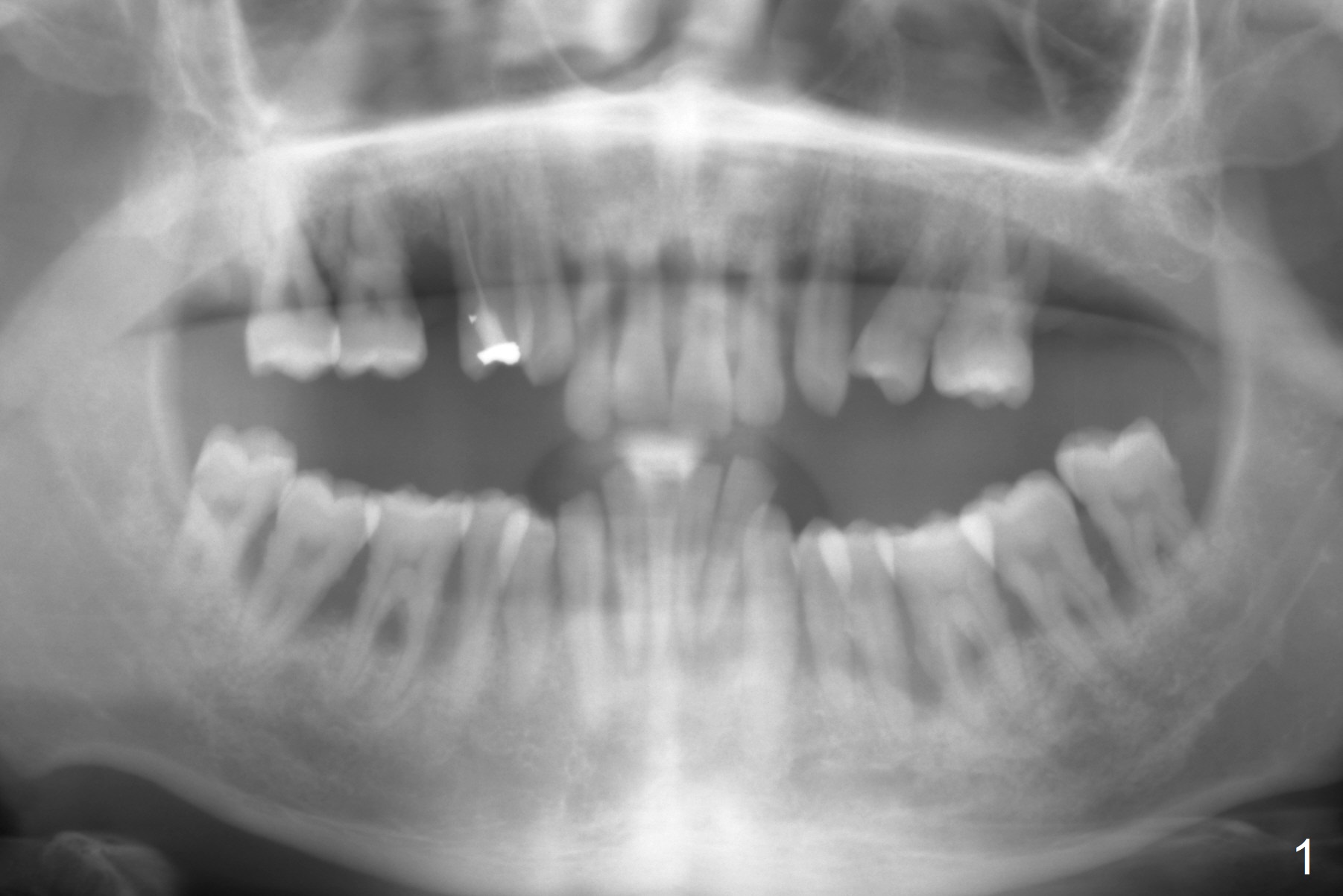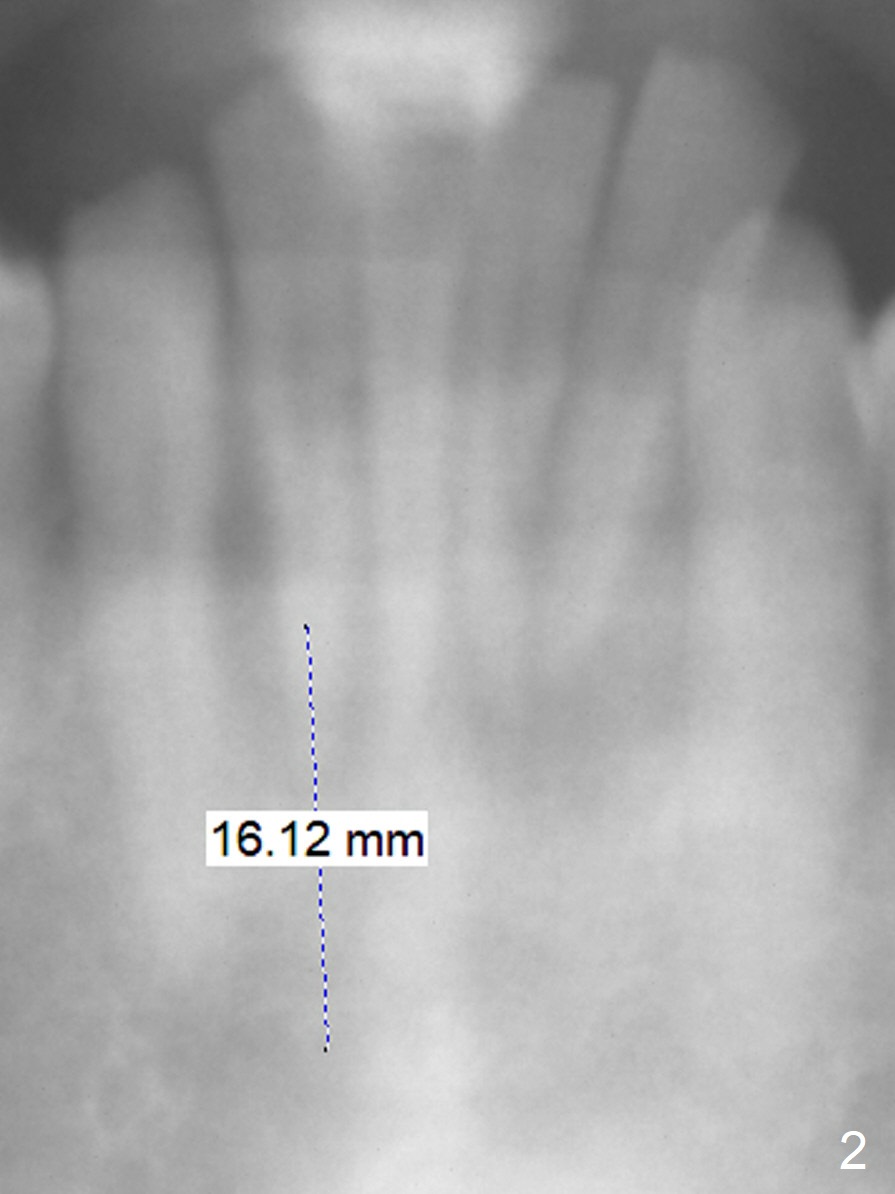 A 36-year-old man has generalized periodontitis (Fig.1). The mobile lower incisors will be extracted for immediate provisional FPD (Fig.2). The initial depth will be 16 mm. Get ready 2 of 1.2 mm drill. If the affected teeth are well aligned, take Alginate impression for surgical stent. In fact the patient has taken CT, which shows narrow 2-piece implants appropriate for the sites.