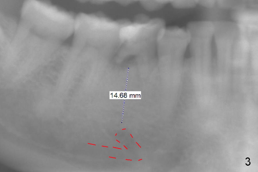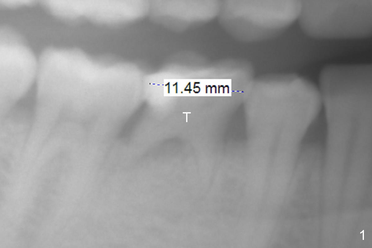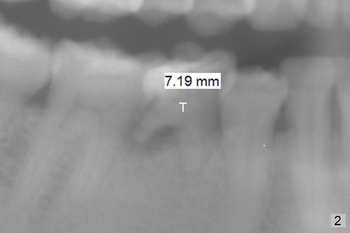 A 39-year-old woman has periodic mobility and pain of the lower right 2nd primary molar. It appears that the mesiodistal width of the tooth has decreased in the last 7 years (Fig.1,2). After extraction and Clindamycin/10 drops of 1:1000 Epinephrine gauze for 3 times, use LR plastic quadrant tray and PVS to take impression of the socket for education purpose. Try using Magic Expanders, but Magic Drills will be most likely used to finalize the osteotomy, since the bone density does not seem to be low. The initial depth will be 11 mm for IBS implant (Fig.3).