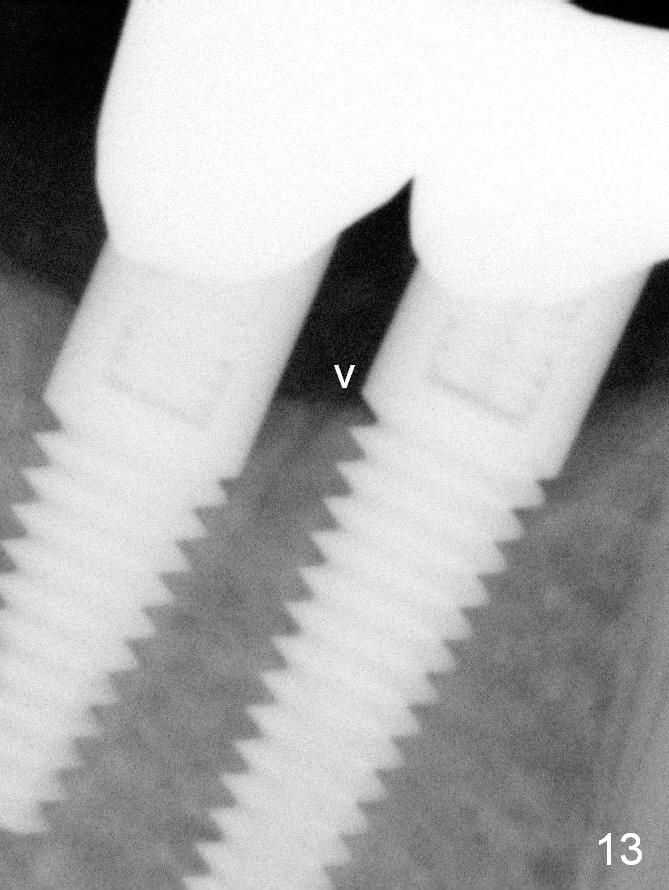 Four months post cementation, there is further bone resorption (Fig.13 v). Surgery contributes to bone loss.