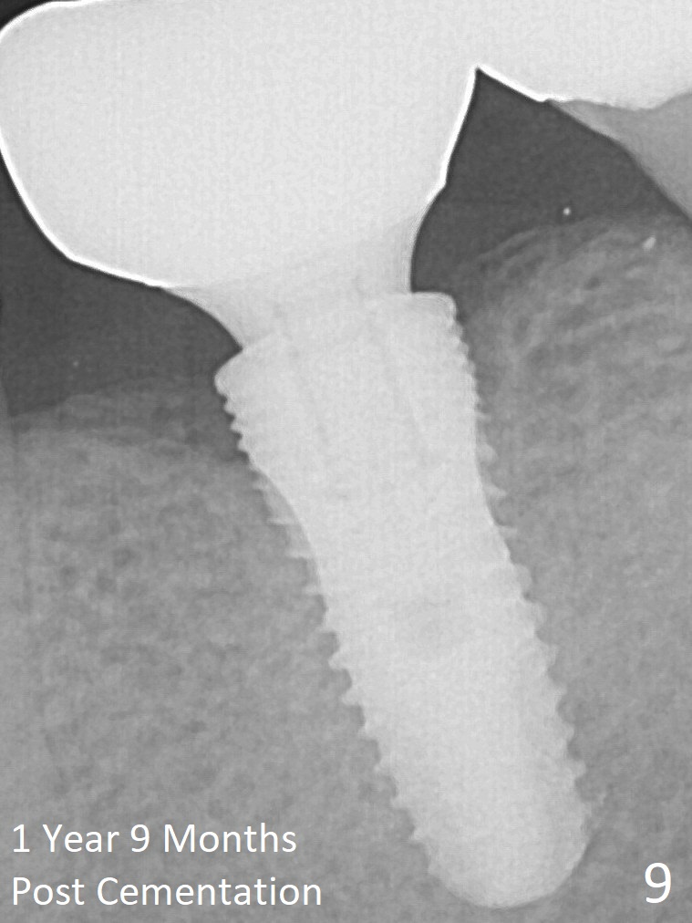 The bony defect appears to be repaired 1 year 9 months post cementation (Fig.9).