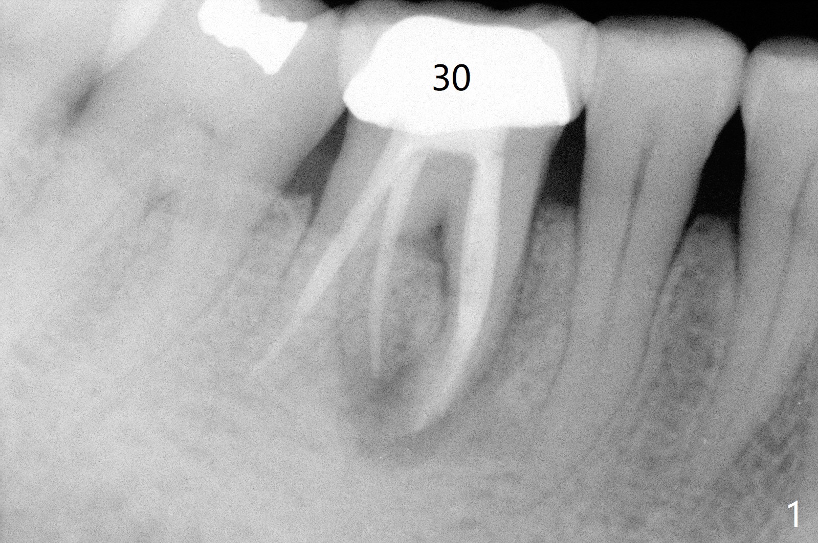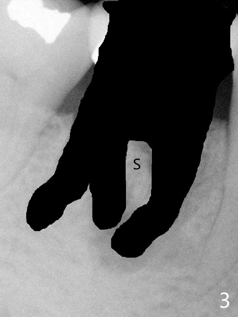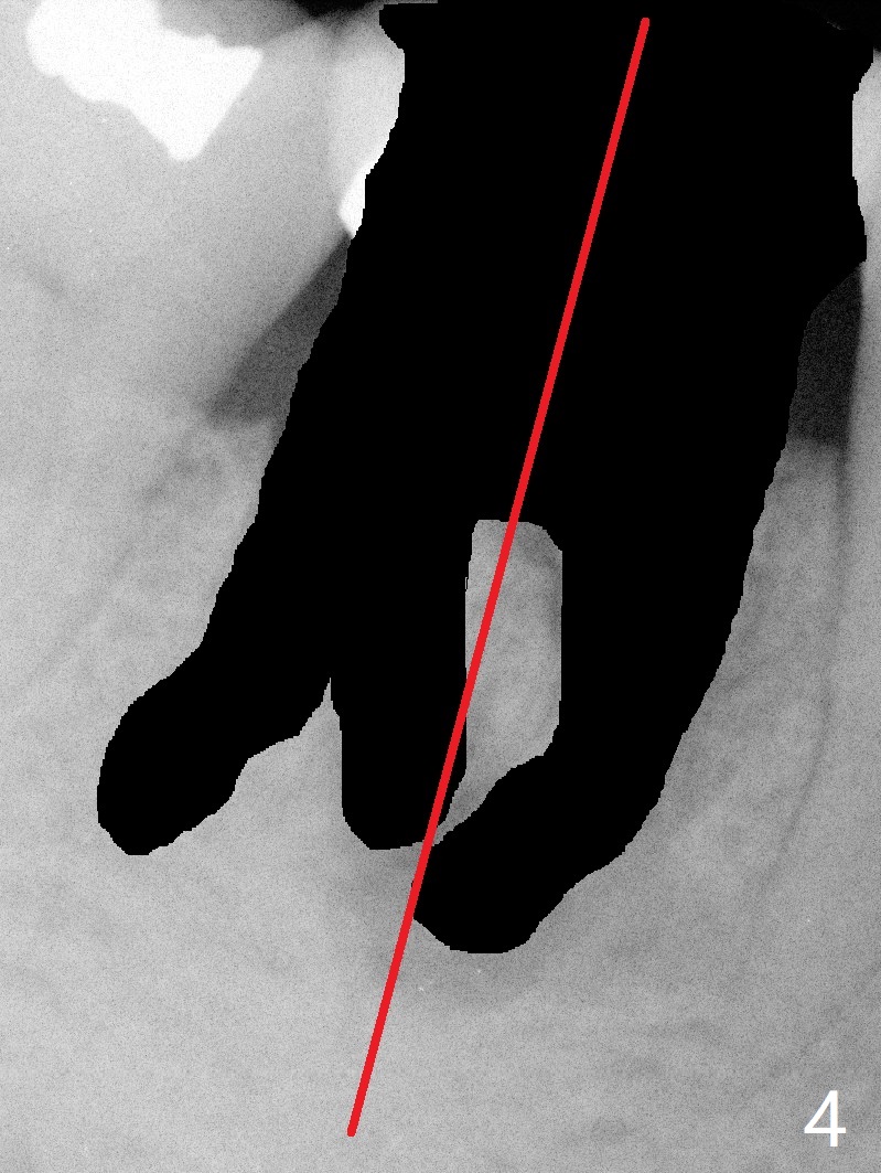 A 55-year-old woman has severe bone loss (Fig.1 with buccal and lingual fistulae) around the mesial (M in Fig.2) and distolingual (DL) roots. If there is a septum after extraction (Fig.3 S), osteotomy will be established in the septum to enhance primary stability (Fig.4). When the septum cannot be saved (Fig.5), osteotomy is to be initiated in the septal slope oblique (Fig.6 <). The osteotomy will be straightened once an entry is made (Fig.7). The initial osteotomy is slightly distal, since as osteotomy increases (Fig.8 blue), it tends to shift mesial (arrow). In addition, the apex of the 2nd bicuspid tilts distal (yellow dashed line). Depth of osteotomy is 20 mm (crest, Fig.9) or 18 mm (septum) so that 8 mm of the native bone can be obtained with 3 mm clearance from the Inferior Alveolar Canal (red dashed line). PRFx2 is required (seems not done).