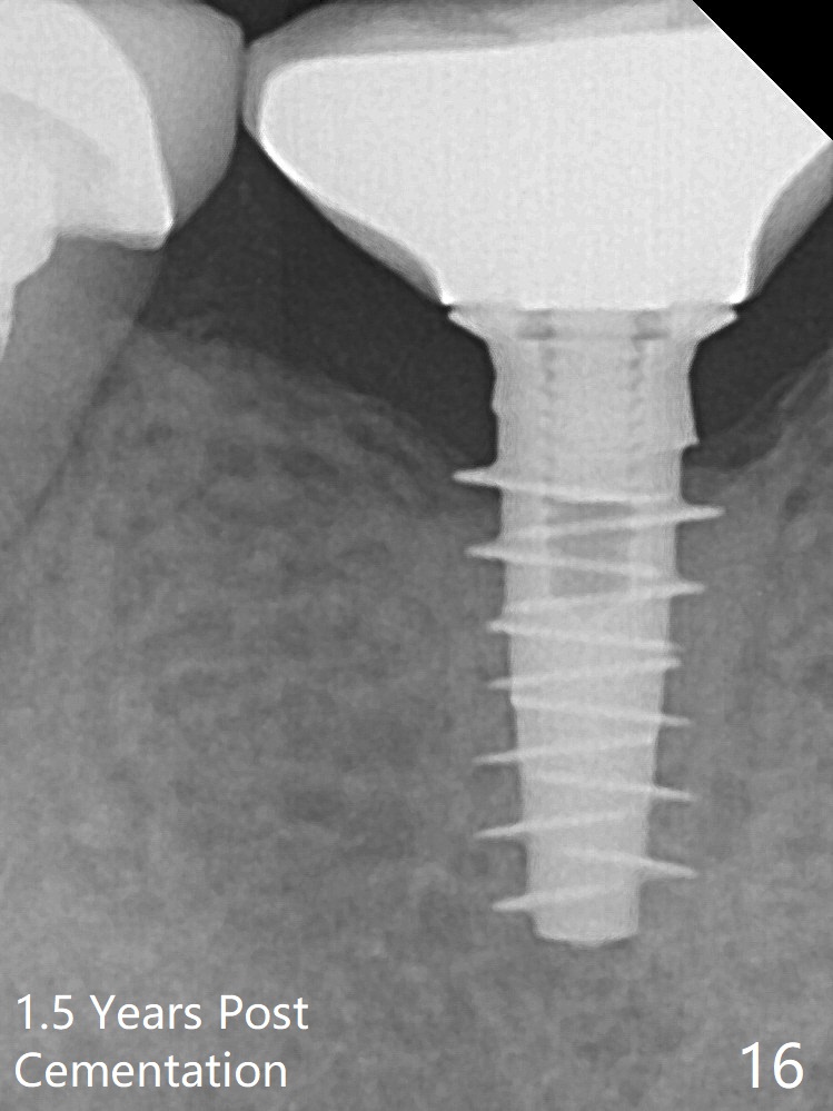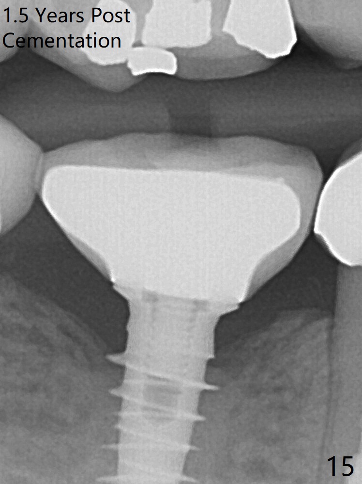 The bone density immediately around the implant appears to increase 1.5 years post cementation (Fig.15,16).