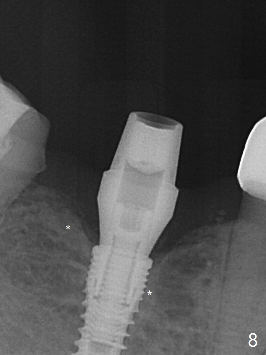 There appears dense bone formation 3 months postop (Fig.8 *).