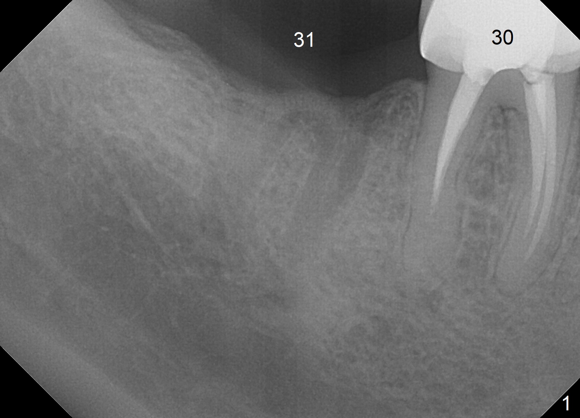 A 47-year-old man requests extraction of the tooth #30 for implant in spite of the fact of missing #31 (Fig.1), The tooth #30 remains symptomatic after RCT retreatment by a specialist. The apical distal canal is obliterated.