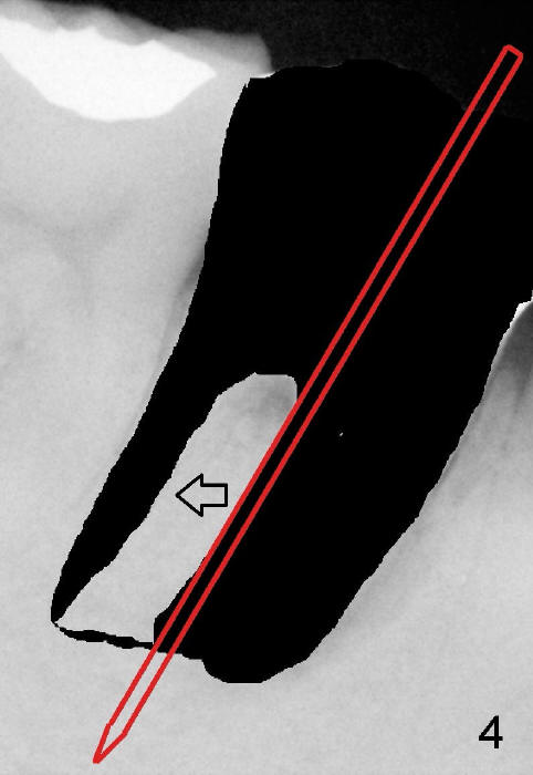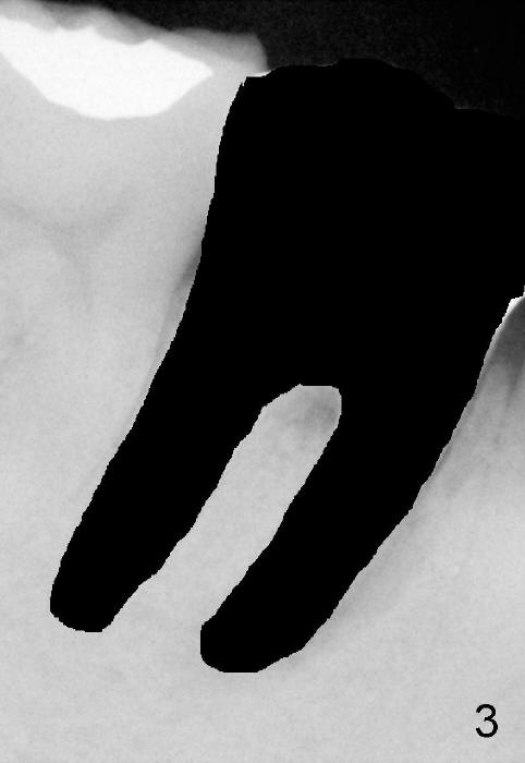 Try to remove the crown with forceps and section the tooth (Fig.2 black line) for easy tooth removal (Fig.3: using proximators).