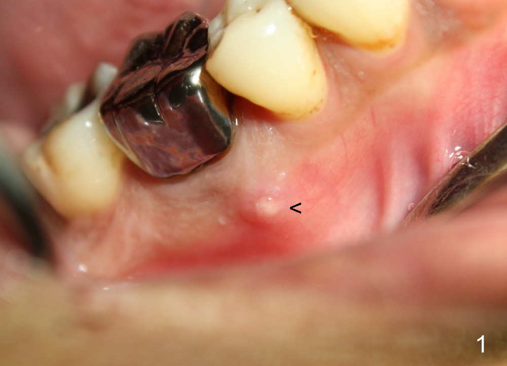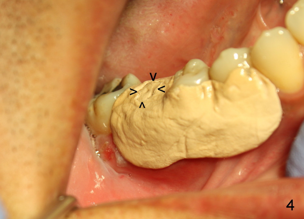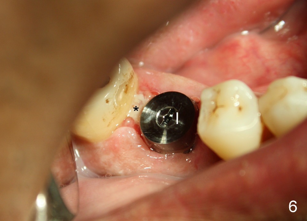 Due to the presence of the abutment (Fig.4 arrowheads), the perio dressing remains in place 7 days postop.