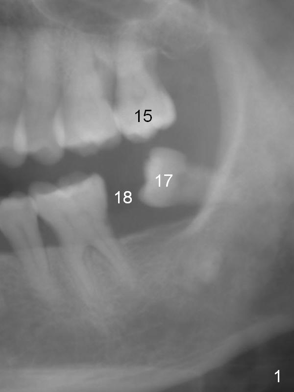 A 53-year-old lady has a small statue. The tooth #18 was extracted due to #17 impaction (Fig.1). To prevent further supraeruption of #15, an implant is to be placed at the site of #18 (Fig.2). After use of a 4 mm implant spacer and starter and 8 mm pilot drills, insert a short parallel pin for occlusion check and a calibrated one for X-ray. A relatively small and short implant will be sufficient for function. Scaling & root planing and #17 extraction have been finished.