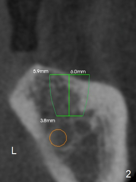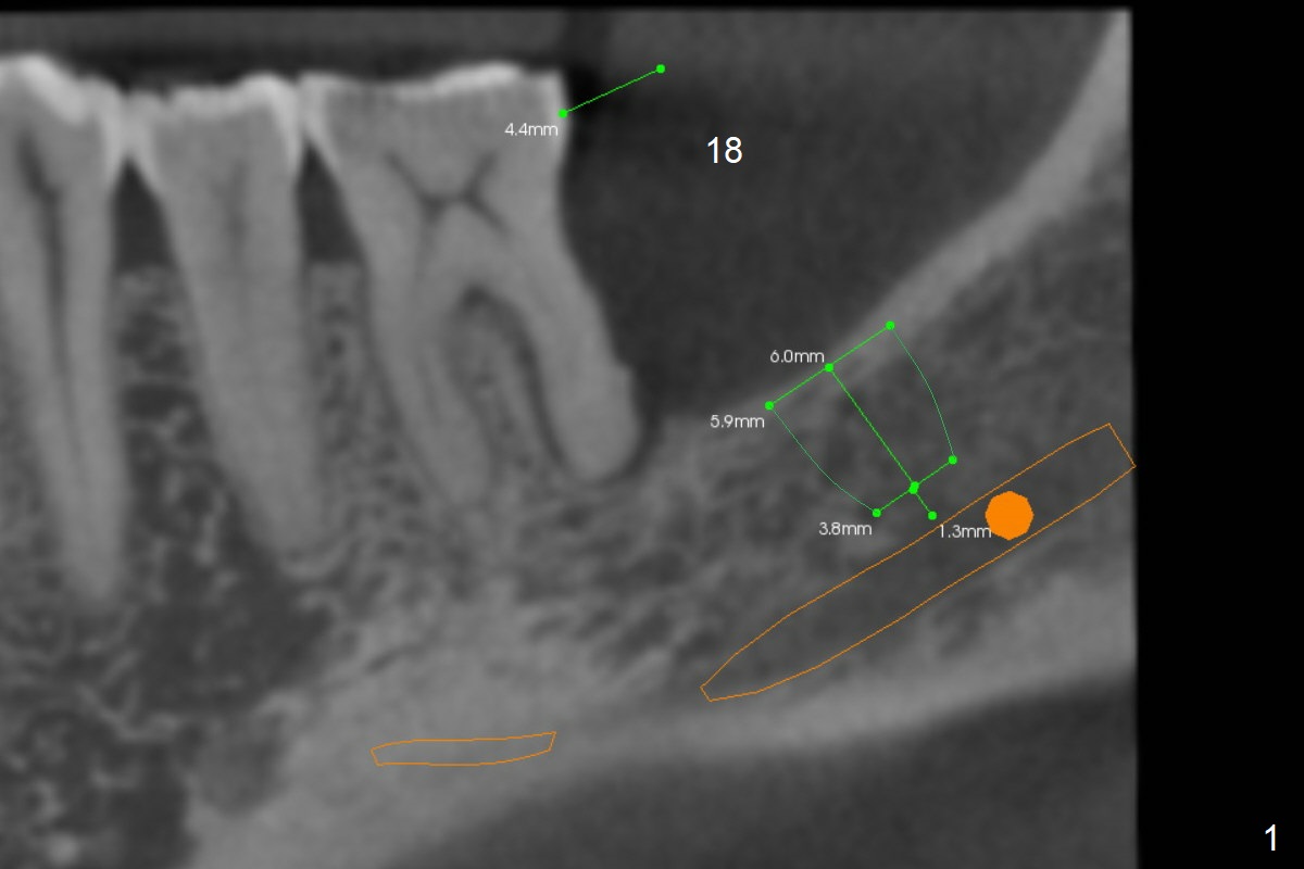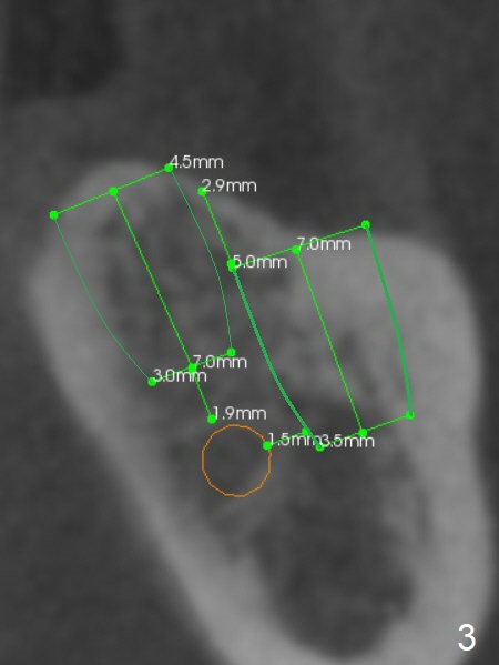 A 57-year-old man has severe bone loss at #18 (Fig.1). It appears that there are 3 sites of placement of an implant (Fig.2,3).