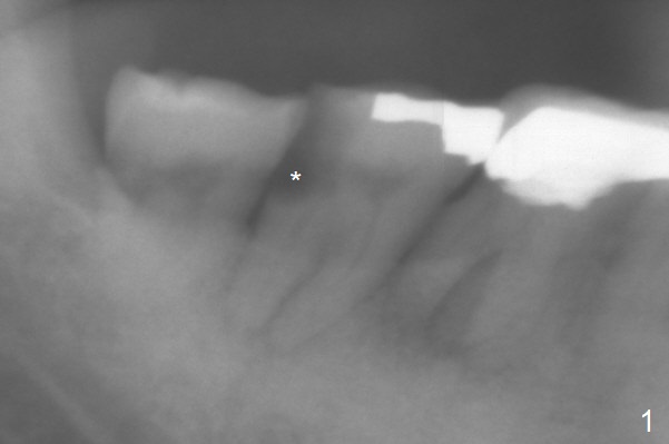 | Long Implant A 72-year-old man has DO subgingival caries (Fig.1 *). He prefers implant over RCT (Fig.2). The tooth #30 has deep pocket or an abscess distlbuccally. Cavitron scaling will be done. Return to