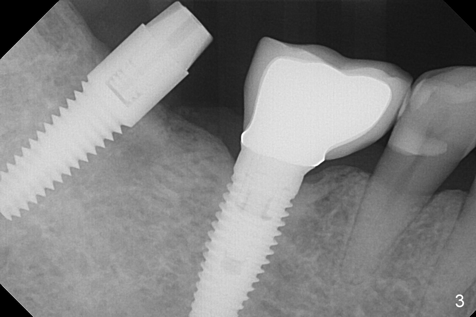 The patient will return for provisional >`1 month postop with chief complaint "the implant is too high". The 2nd and 3rd options are to place healing screw and healing abutment.