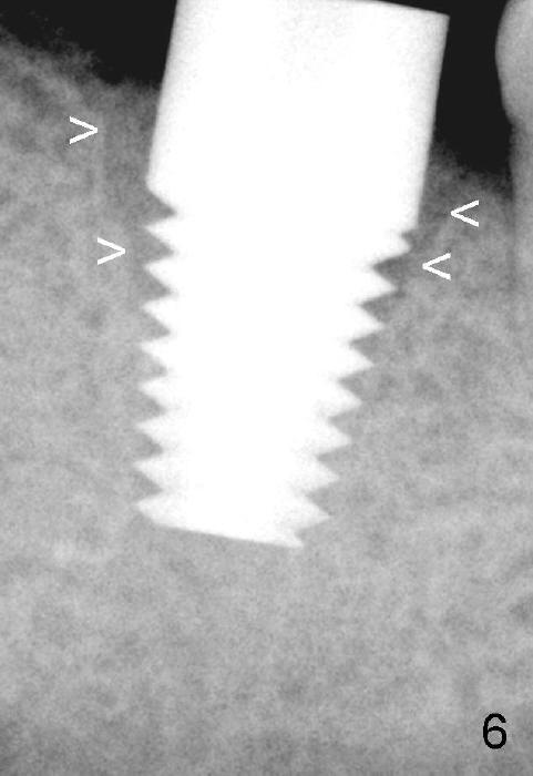 When the 7x14 mm implant is placed, there are gaps mesial and distal to it (Fig.6 arrowheads).