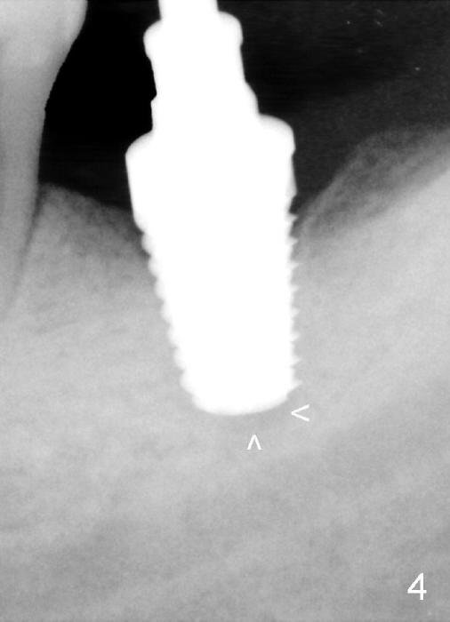 The implant remains stable 4 months postop without bone resorption (Fig.7).