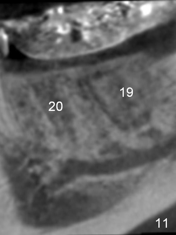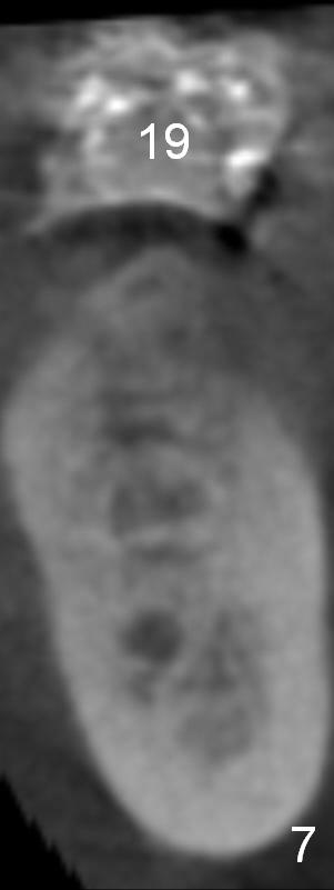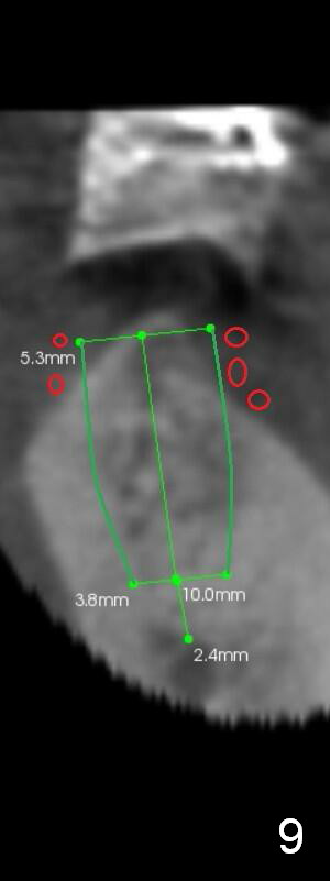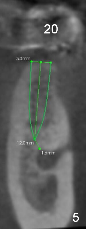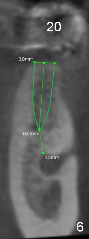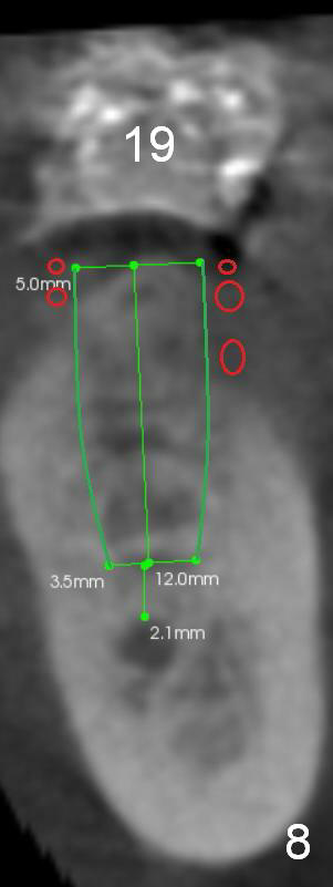 At the site of #20, a 1-piece implant (3 mm) will be used (Fig.5,6 CT coronal sections): apparently the shorter one (10 mm) is safer than 12 mm one.