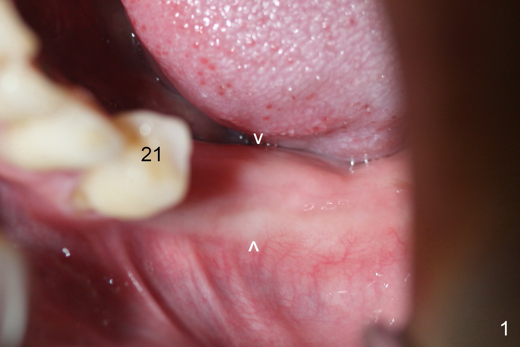 When the provisional is removed for final restoration, #18 mesial gingiva is recessive and does not attach to the implant well. There is light bleeding on Piezo. All suggest early sign of periimplantitis.