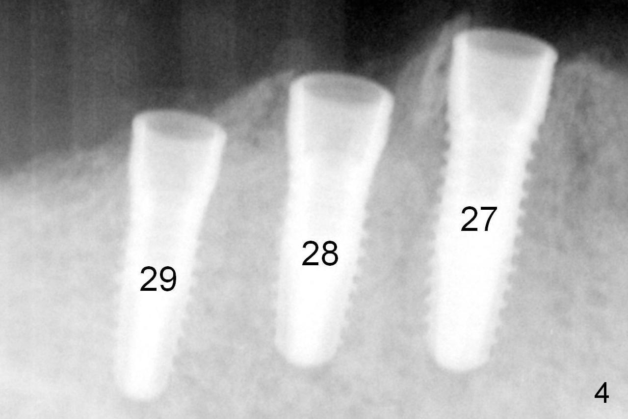 All of the 3 implants (#27-29: 4.5x14 mm, 4.5x12, and 4.1x12 mm) achieve primary stability (»55 Ncm).