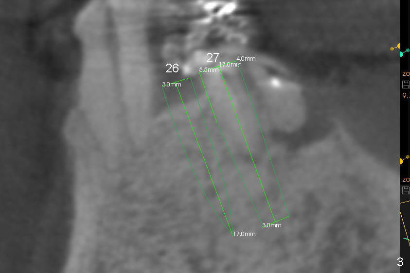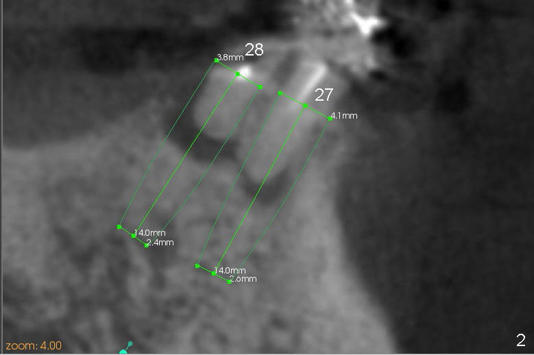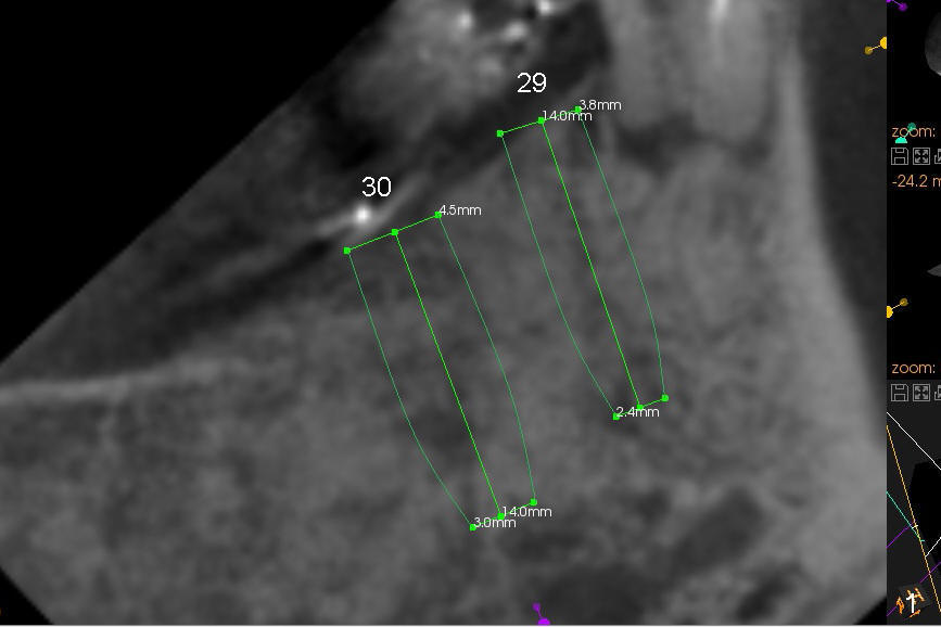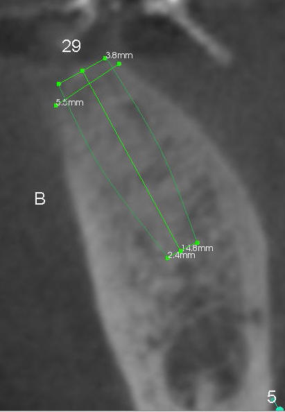 Fig.1-3 are CBCT sagittal sections of the lower right quadrant, whereas Fig.4-8 are coronal sections. The lower left quadrant has been restored.